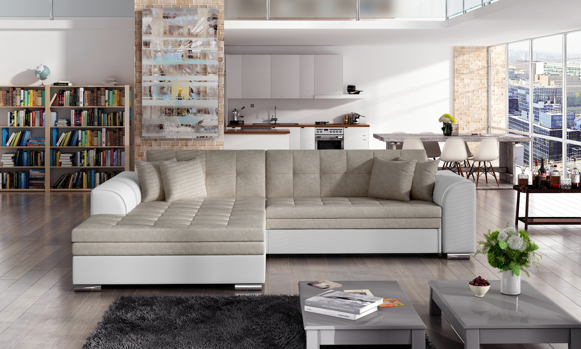 Sorento is a stylish, multifunctional corner sofa with a stable L-shaped structure, which will serve you as a piece of furniture for many years. The sofa, measuring 295 x 195 x 80 cm, works well not only as a place for daytime relaxation, but also as a central decoration of the living room. Thanks to the dolphin-type mechanism, the Sorento corner sofa is also suitable for night rest. The sleeping surface, measuring 210 x 126 cm, ensures a long sleep and full relaxation. Maximum comfort is guaranteed by the combination of corrugated spring and T30 foam, from which the seat is made. When choosing a Sorento corner sofa, it is worth noting its unusual style, as well as: contoured backrest, rounded armrests and stylish quilting, which add character. Sorento is style, comfort and class in itself. It is certainly worth having such a piece of furniture in your apartment. Sorento is style, comfort and class in itself. It is certainly worth having such a piece of furniture in your apartment.