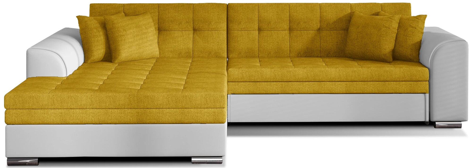 Sorento is a stylish, multifunctional corner sofa with a stable L-shaped structure, which will serve you as a piece of furniture for many years. The sofa, measuring 295 x 195 x 80 cm, works well not only as a place for daytime relaxation, but also as a central decoration of the living room. Thanks to the dolphin-type mechanism, the Sorento corner sofa is also suitable for night rest. The sleeping surface, measuring 210 x 126 cm, ensures a long sleep and full relaxation. Maximum comfort is guaranteed by the combination of corrugated spring and T30 foam, from which the seat is made. When choosing a Sorento corner sofa, it is worth noting its unusual style, as well as: contoured backrest, rounded armrests and stylish quilting, which add character. Sorento is style, comfort and class in itself. It is certainly worth having such a piece of furniture in your apartment. Sorento is style, comfort and class in itself. It is certainly worth having such a piece of furniture in your apartment.