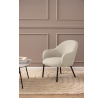 A Spencer fotel szokatlan formájával tűnik ki. A kárpitozott ülés, amely egy buborékra emlékeztet, lekerekített sziluettel rendelkezik, amelyet durván szőtt anyag borít. A kerek fekete lábakon álló szék stabil, és jól illeszkedik a különböző belső stílusokhoz, a boho, japandi, skandináv és modern glamour stílusokig. Elegáns pihenőszék egyszerű és kerek sziluettel. Kerek acéllábak fekete színben, matt porszórt bevonattal. Háttámla magassága: 36 cm Ülőfelület szélessége: 53 cm Ülőfelület mélysége: 52 cm Karfa magassága a padlótól: 56,5 cm Karfa magassága az ülőfelülettől: 16 cm Összeszerelést igényel. Max. terhelés 110 kg Karton méretei: 74x69x56 cm