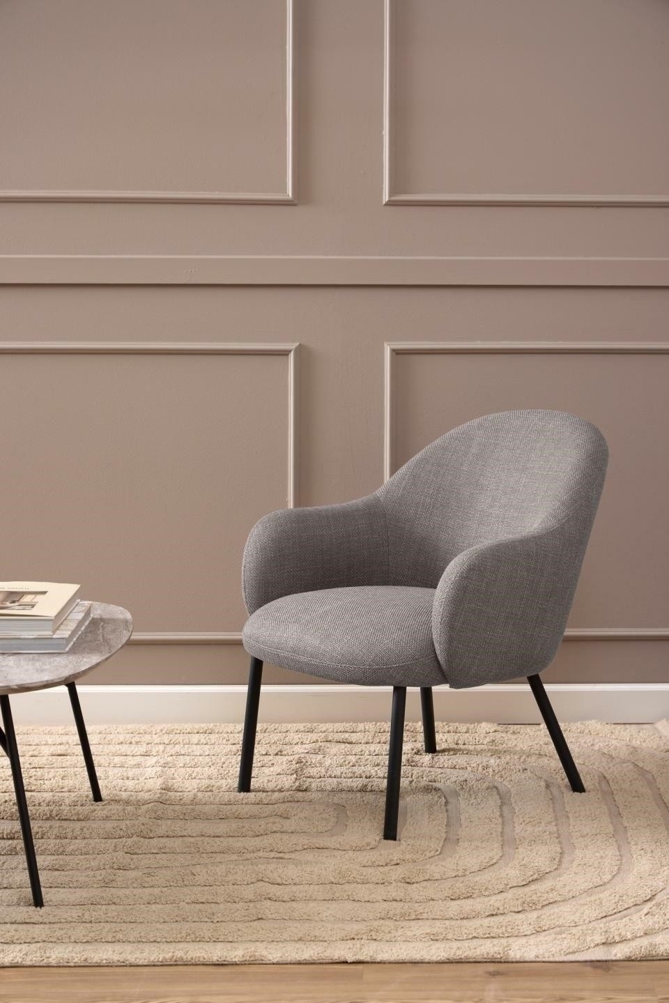 A Spencer fotel szokatlan formájával tűnik ki. A kárpitozott ülés, amely egy buborékra emlékeztet, lekerekített sziluettel rendelkezik, amelyet durván szőtt anyag borít. A kerek fekete lábakon álló szék stabil, és jól illeszkedik a különböző belső stílusokhoz, a boho, japandi, skandináv és modern glamour stílusokig. Elegáns pihenőszék egyszerű és kerek sziluettel. Kerek acéllábak fekete színben, matt porszórt bevonattal. Háttámla magassága: 36 cm Ülőfelület szélessége: 53 cm Ülőfelület mélysége: 52 cm Karfa magassága a padlótól: 56,5 cm Karfa magassága az ülőfelülettől: 16 cm Összeszerelést igényel. Max. terhelés 110 kg Karton méretei: 74x69x56 cm
