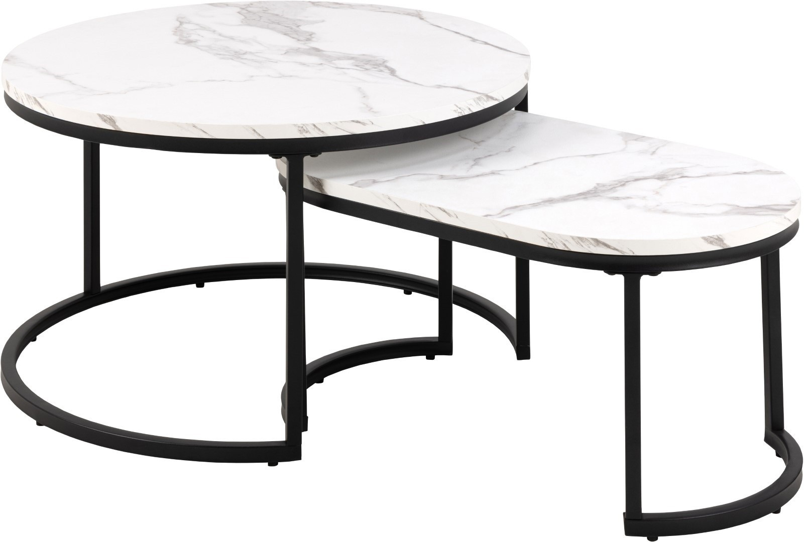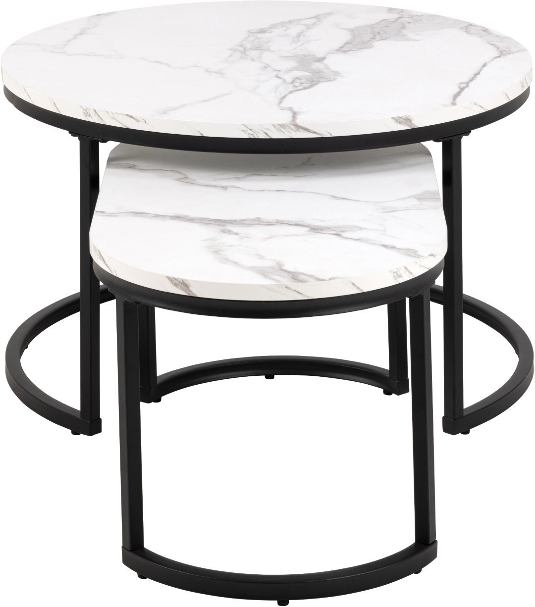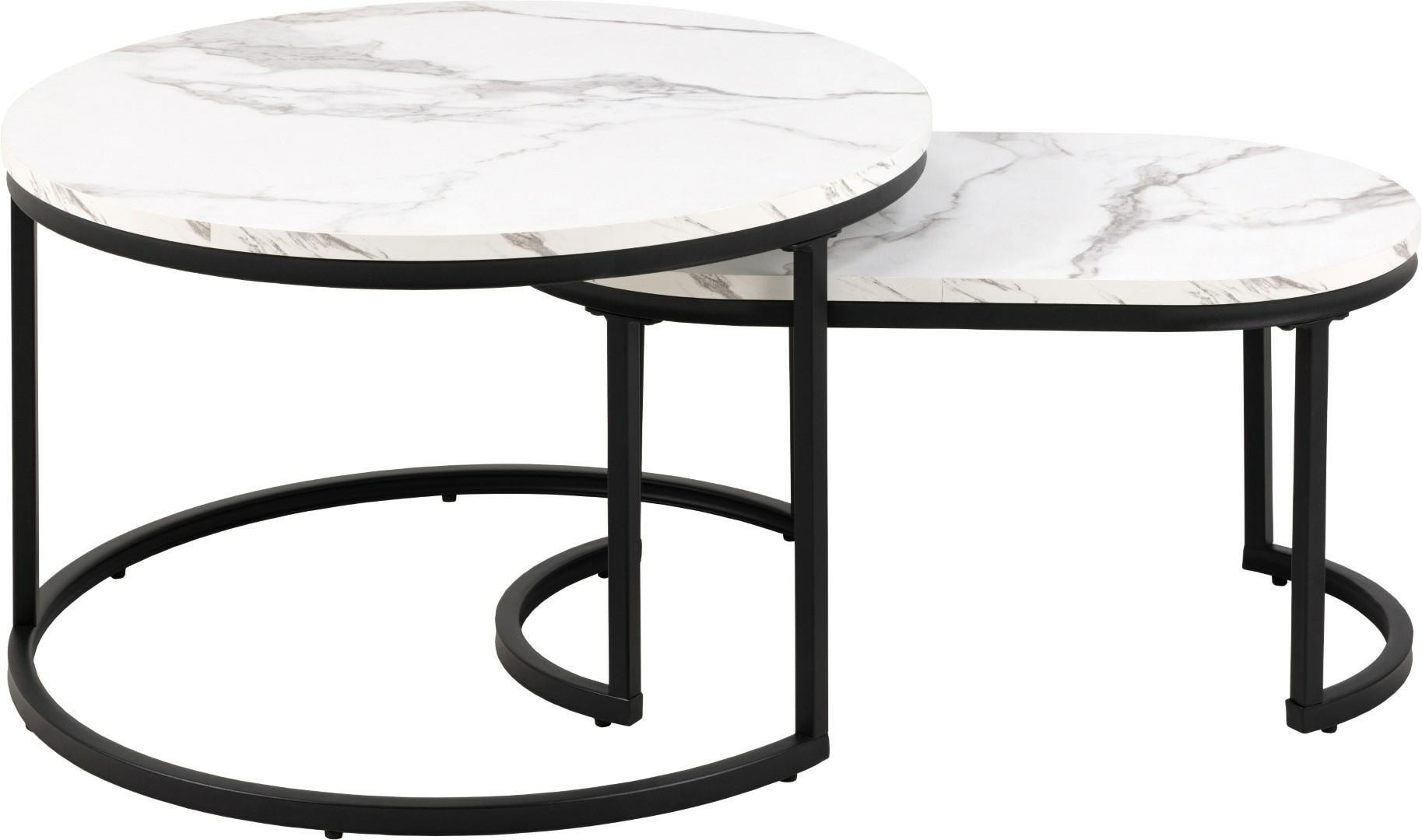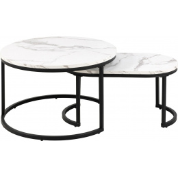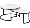 Modern két dohányzóasztal készlet, amelynek vitathatatlan előnye, hogy a kisebb elrejthető a nagyobb alá. Az asztalok lapjai MDF-ből készültek, márványt utánzó furnérral. Elegáns, fényes lapok érdekesen harmonizálnak a fekete, fém asztalok alapjaival. Az asztalok tartós és stabil alapja porszórt festékkel bevont fémből készült. A Spiro asztalkészlet ideális dohányzóasztal a nappaliba vagy a váróterembe. A modern stílusú asztalok bármilyen belső térbe illenek, és annak díszei lesznek. A készlet tartalmaz egy nagyobb kerek asztalt és egy kisebb ovális asztalt. Asztalok méretei: 70x70x42cm 70x40x34,5cm Dobozok száma: 1 Dobozok méretei: 78x76x11,5cm Dobozok súlya: 13kg