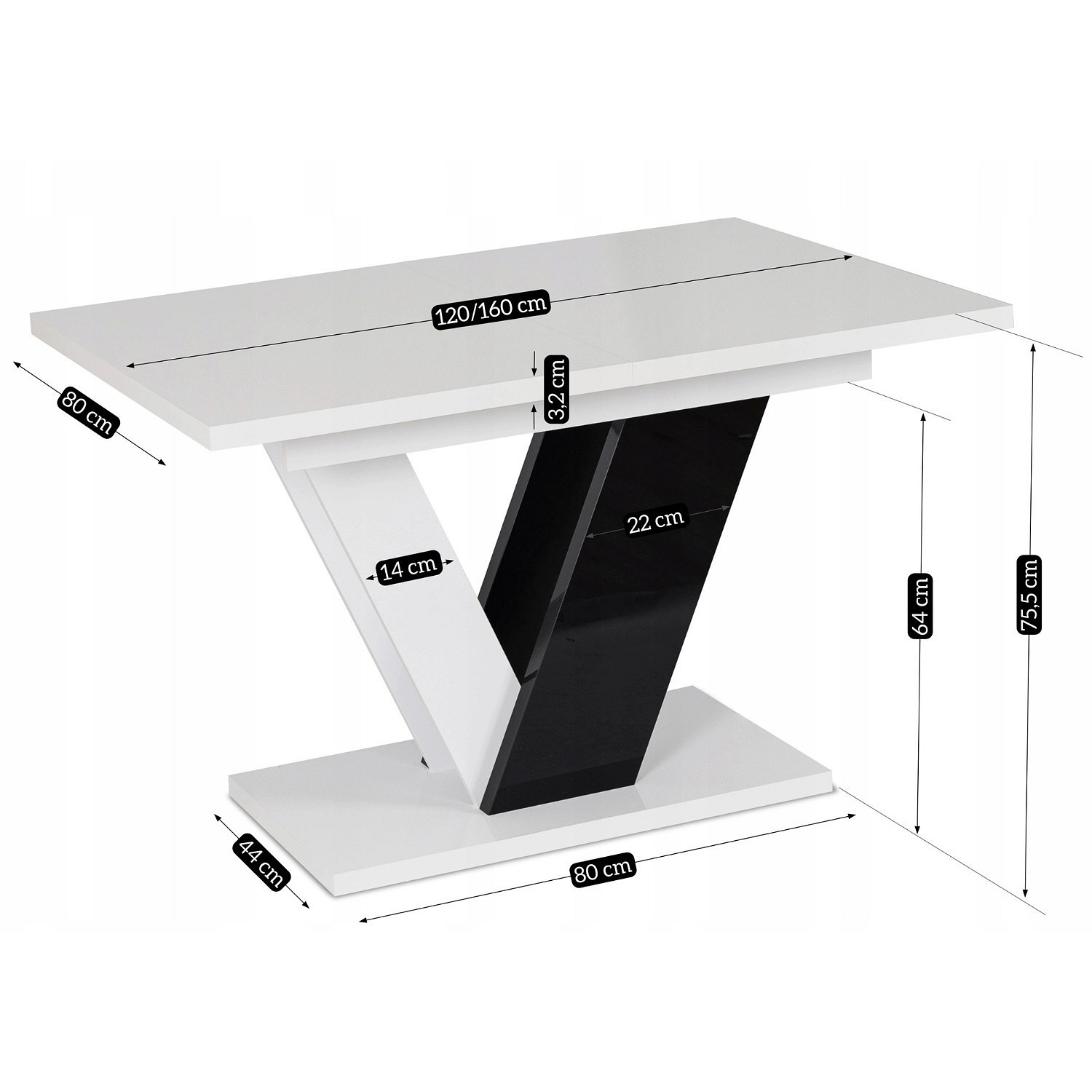 Stół CLARK Rozkładany 120-160 cm Biały/Czarny Połysk