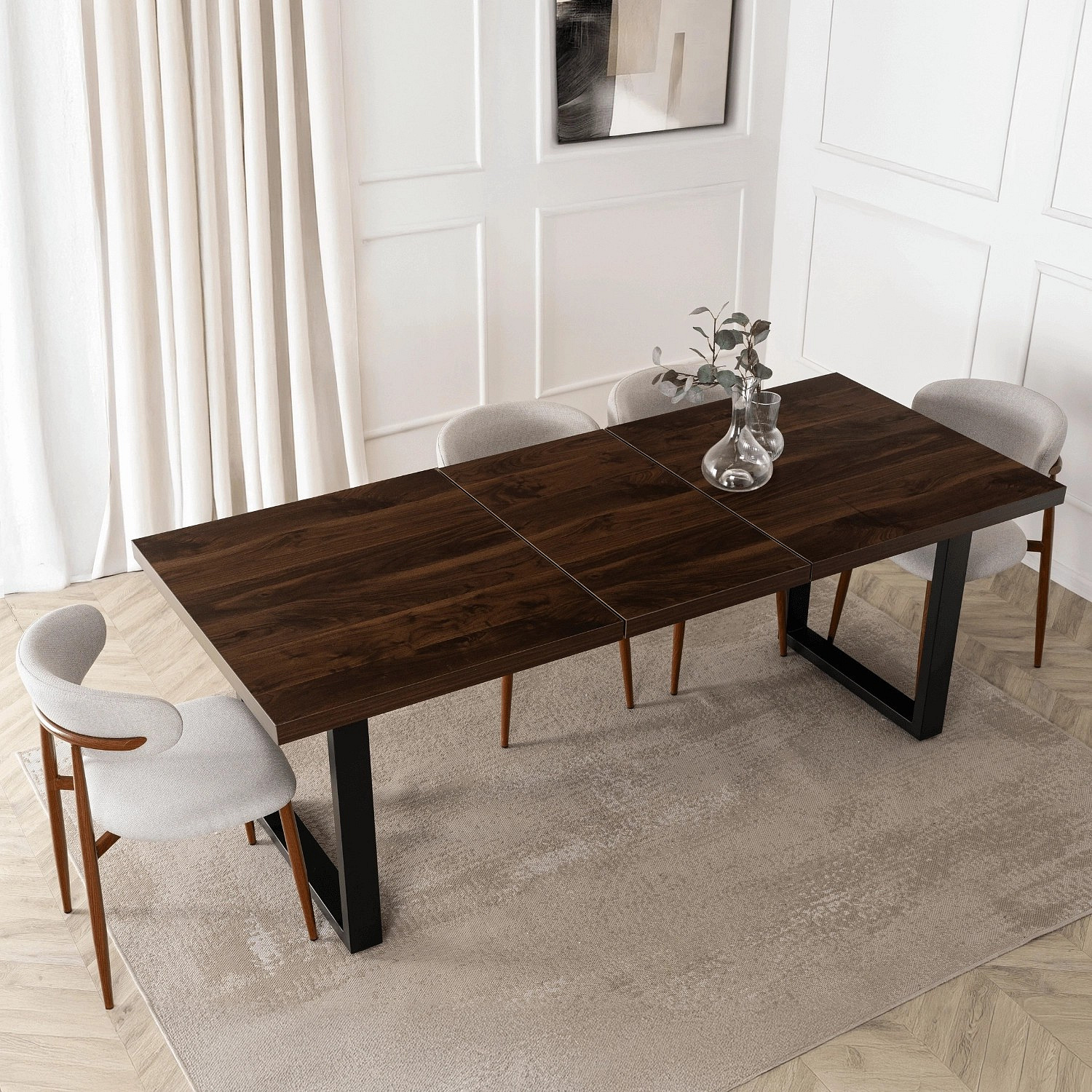 Stół EDWIN Rozkładany 160-260 cm Orzech/Czarny