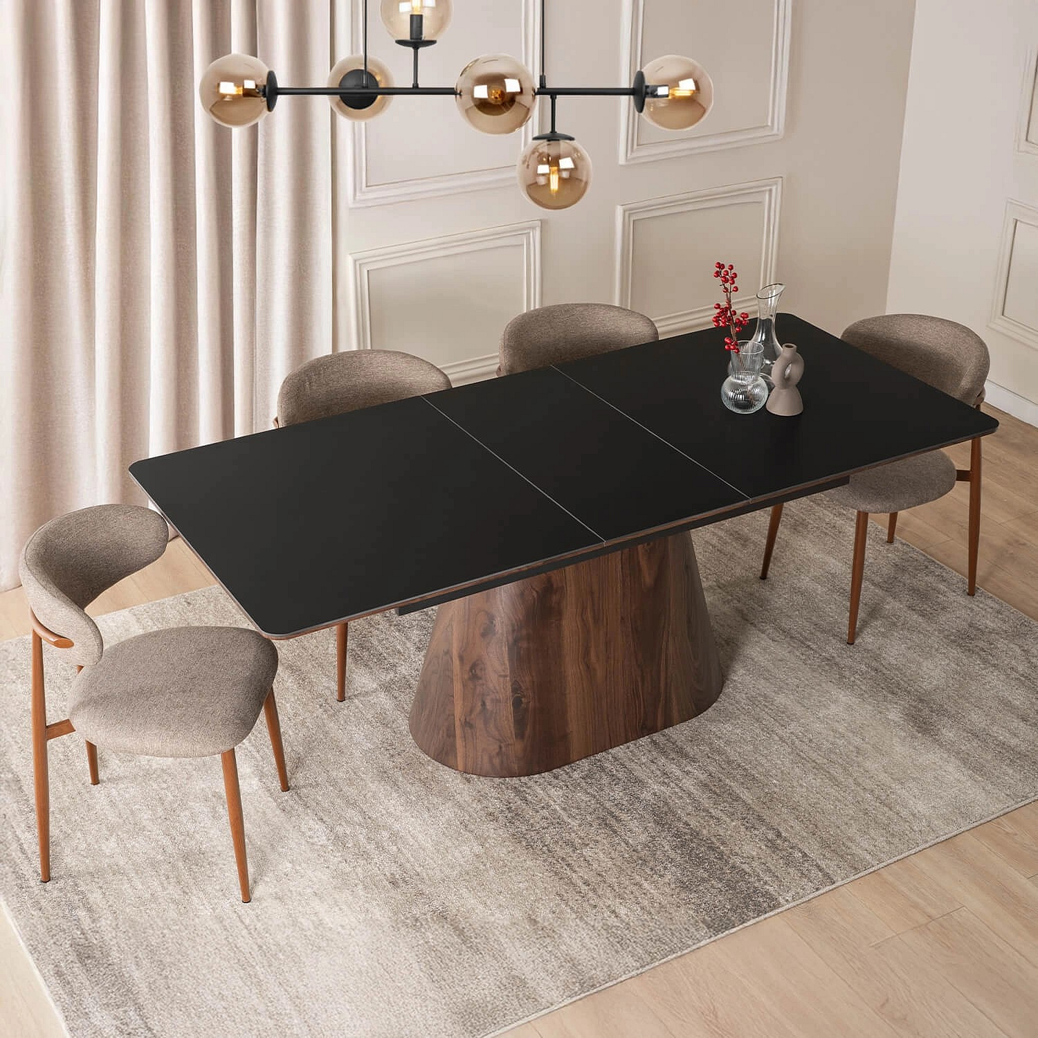 Stół LIZBONA Ceramiczny Rozkładany 160-200 cm Czarny/Orzech