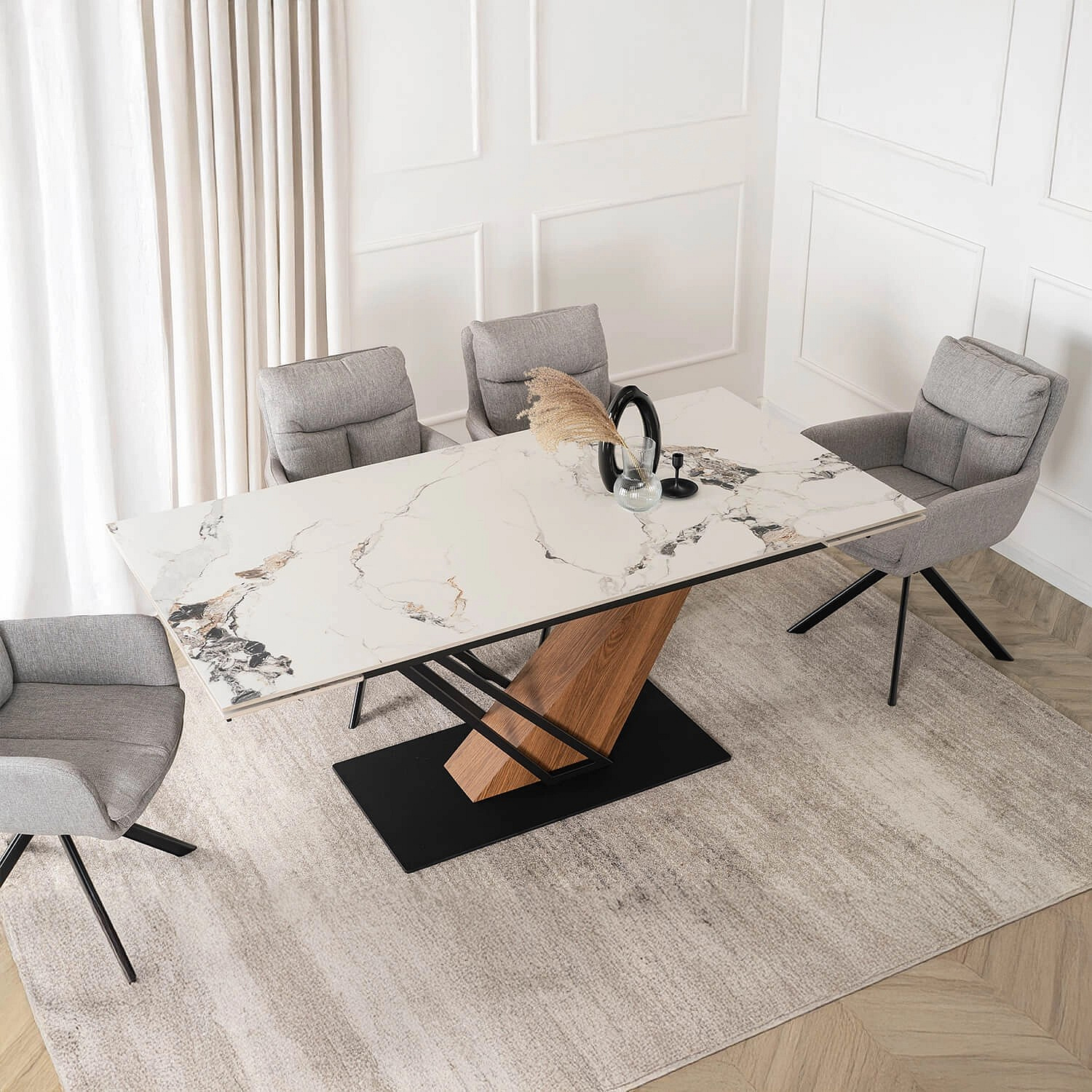 Stół REX 2 Ceramiczny Rozkładany 180-240 cm Biały Marmur/Dąb