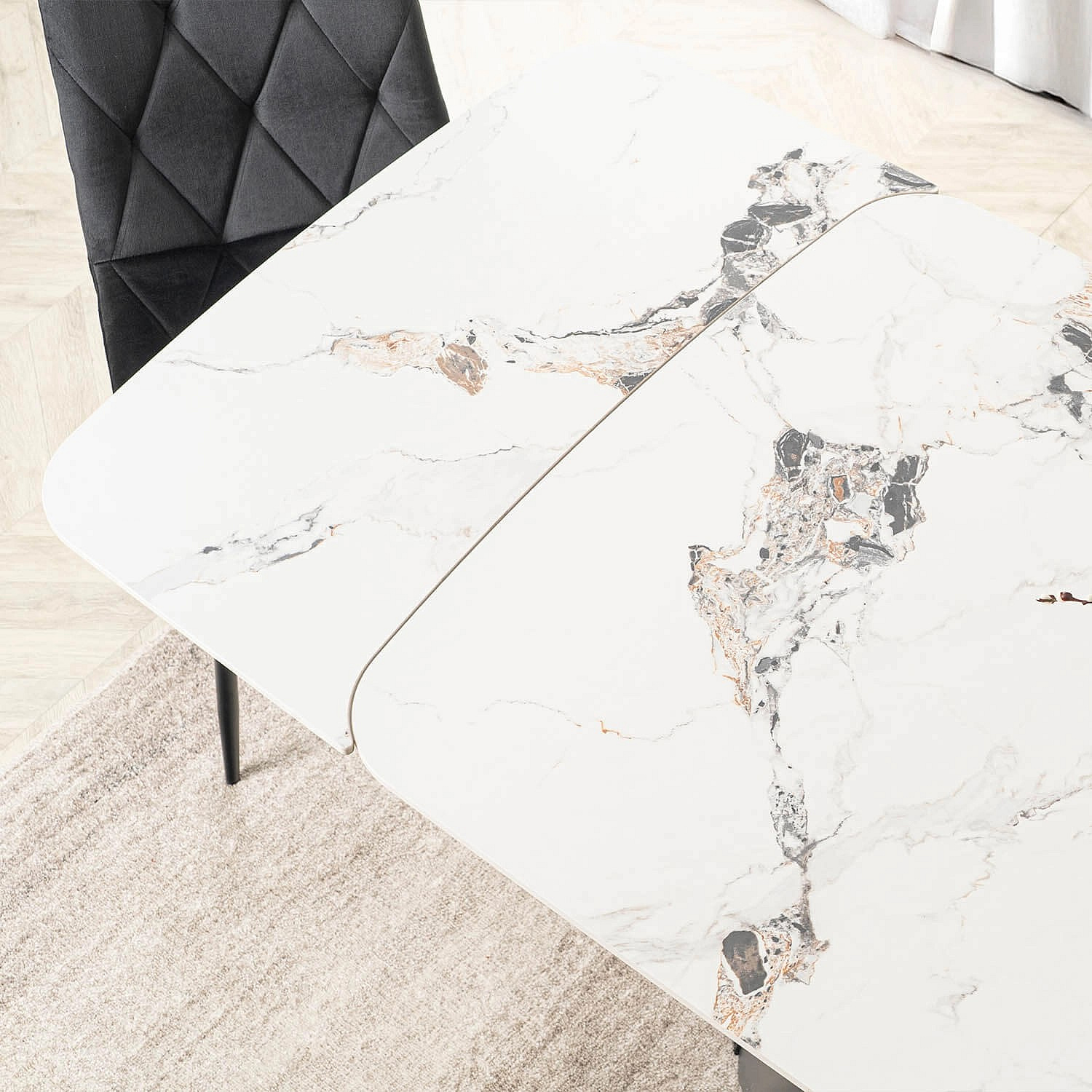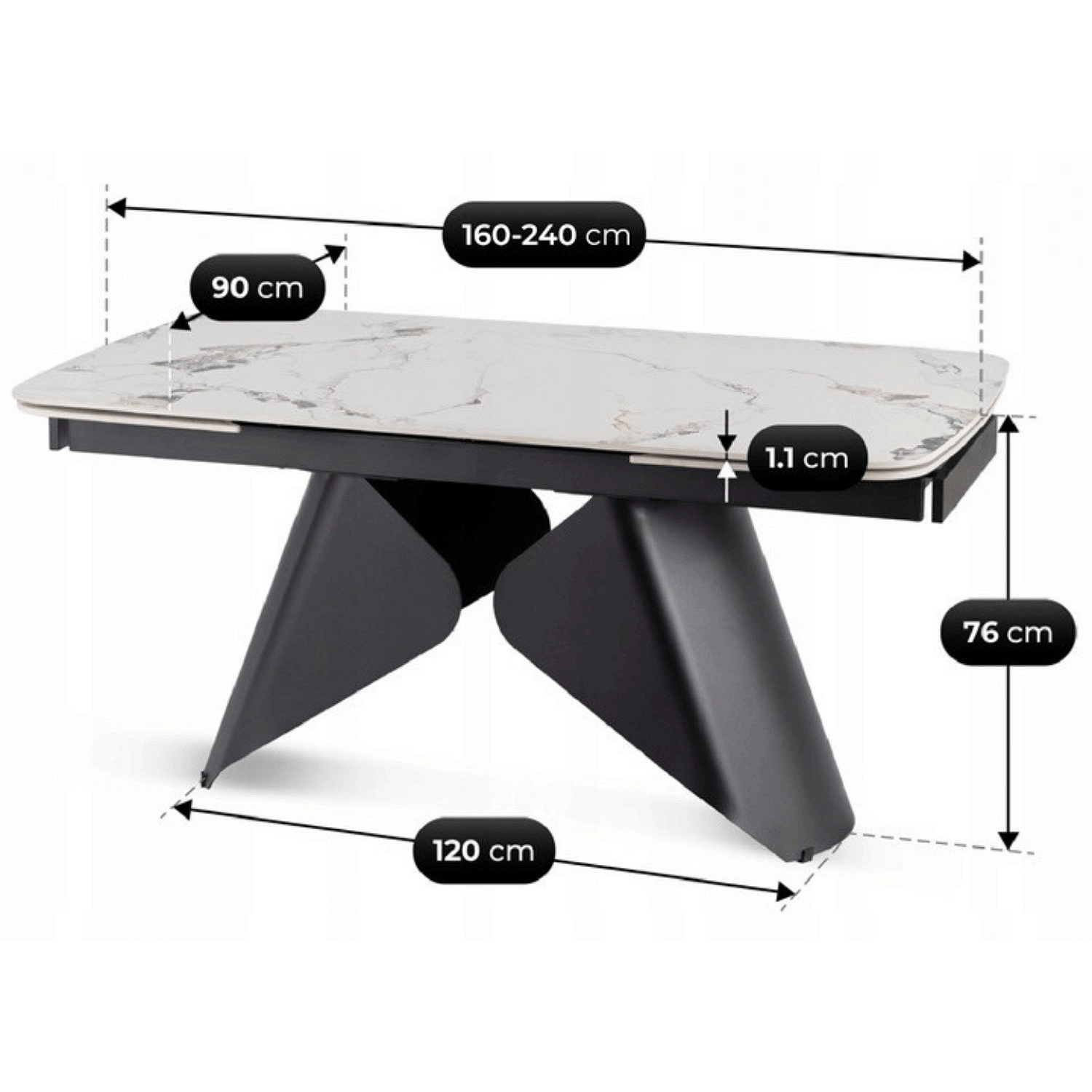 Stół VERONA Ceramiczny Rozkładany 160-240 cm Biały Marmur/Czarny