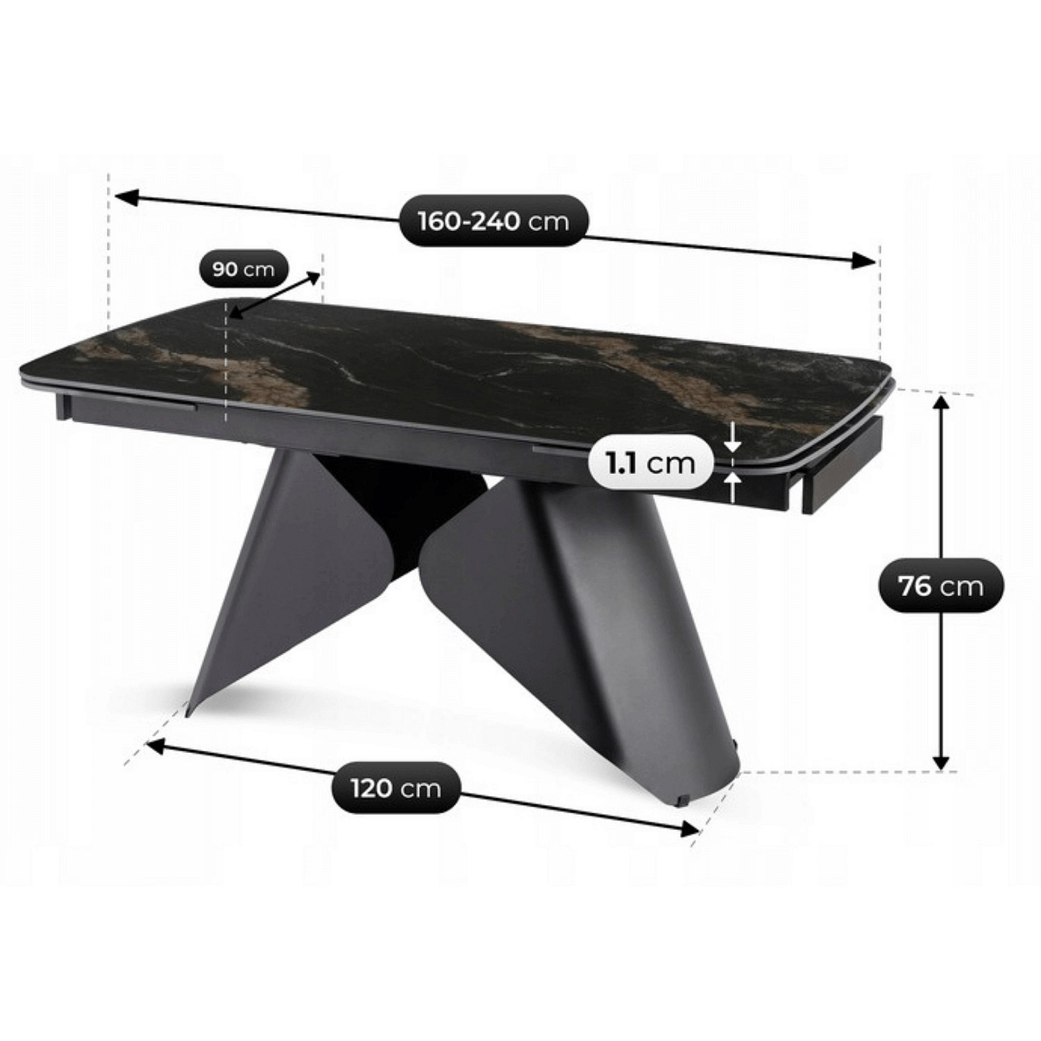 Stół VERONA Ceramiczny Rozkładany 160-240 cm Czarny Marmur/Czarny