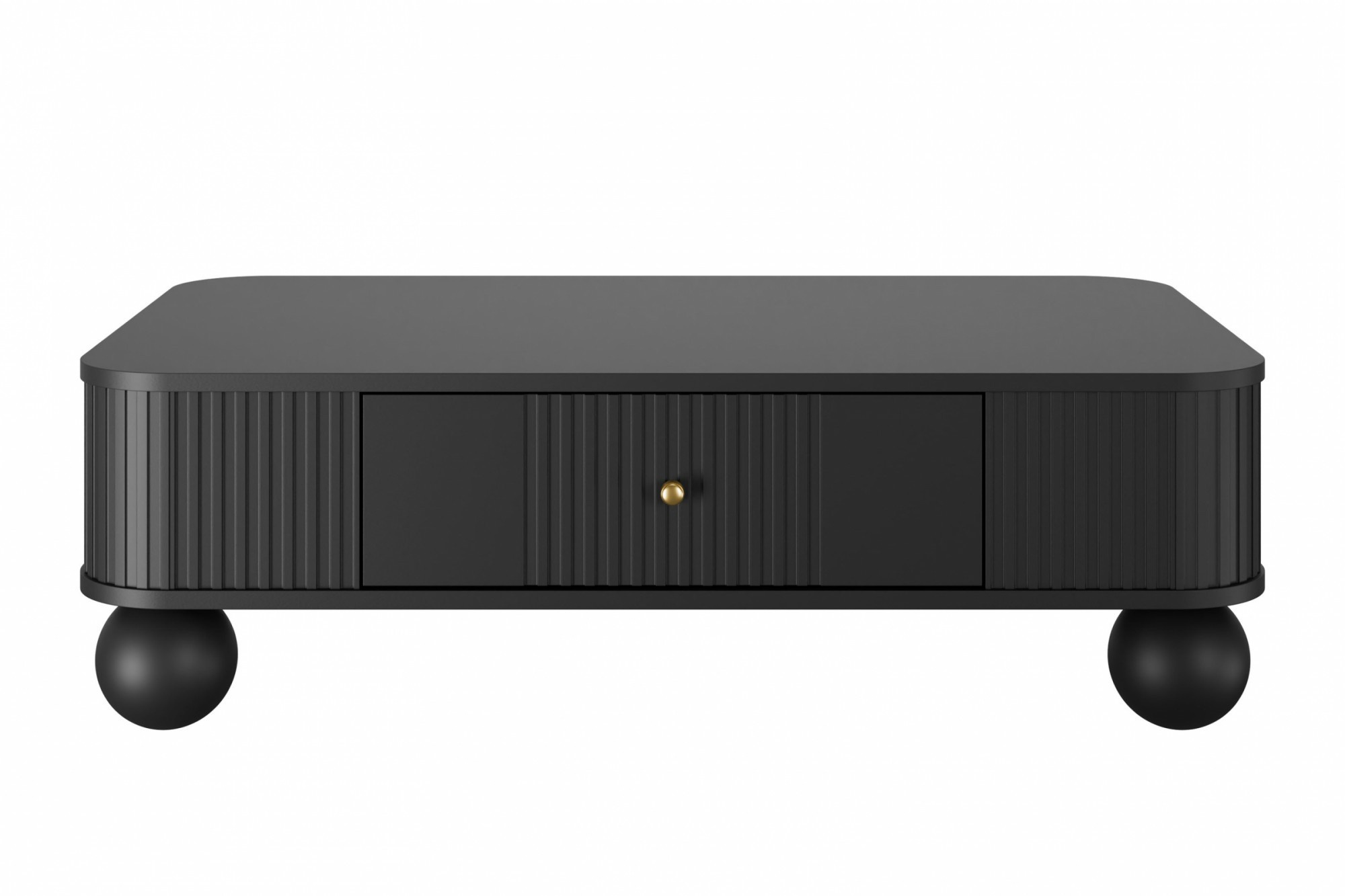 Stolik kawowy z szufladą Vesper 103x60 cm - czarny / złote uchwyty, Szerokość: 103, Wysokość: 32, Głębokość: 60, Wysokość nóżek: 12, Głębokość blatu: , Montaż:
