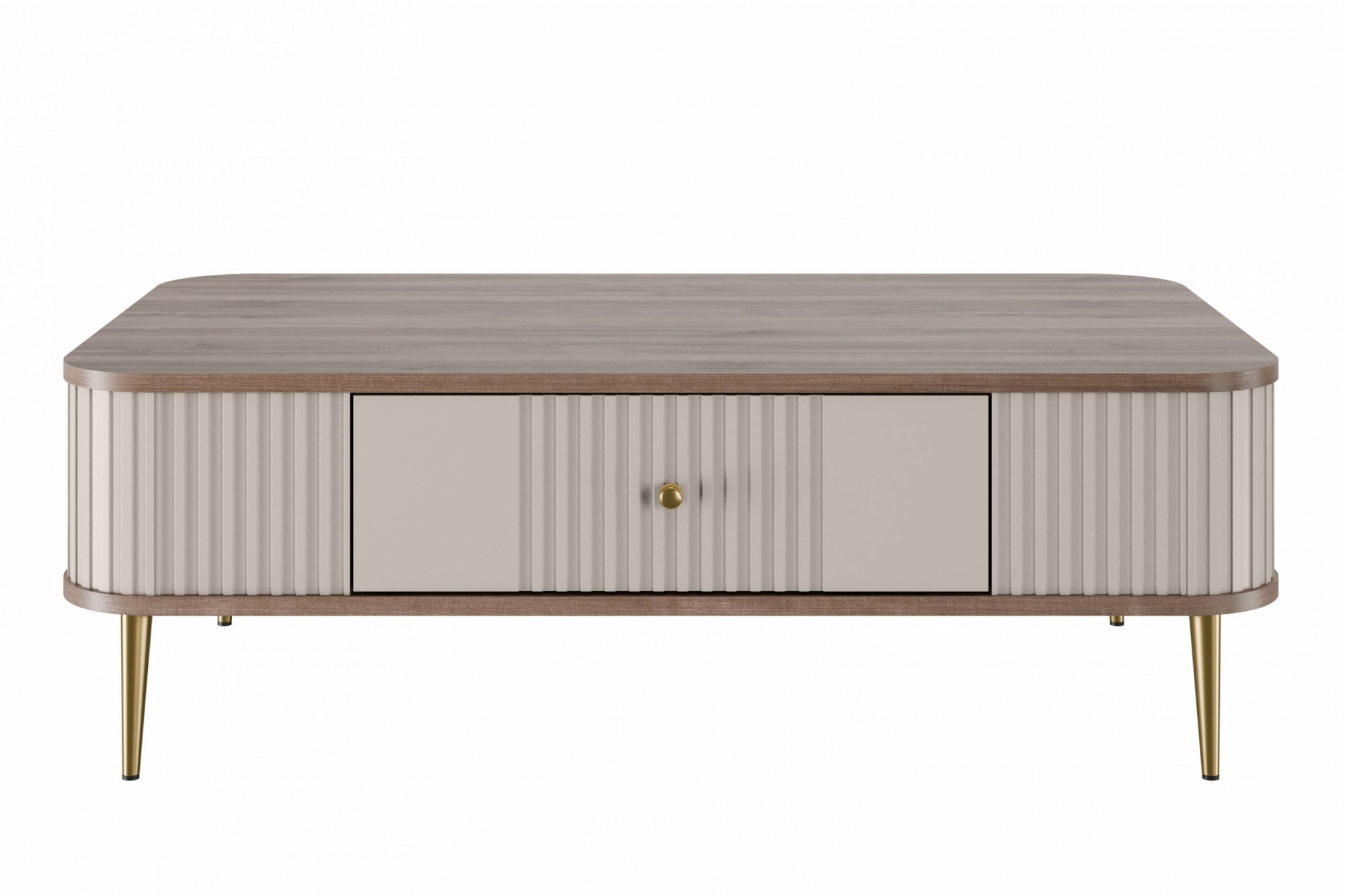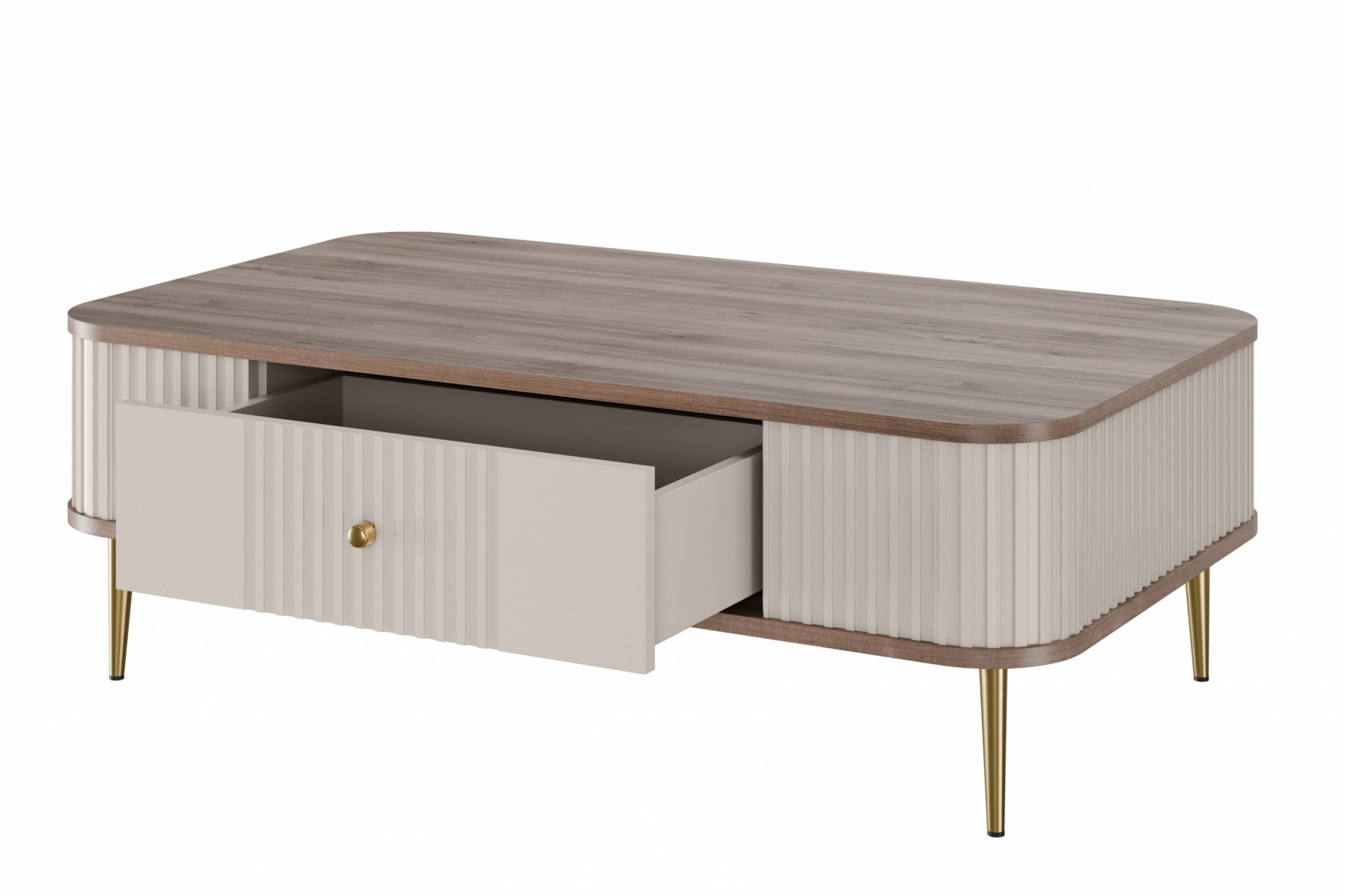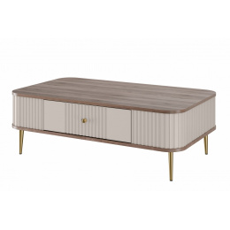 Stolik kawowy z szufladą Vesper 103x60 cm - kaszmir / orzech / złote nogi