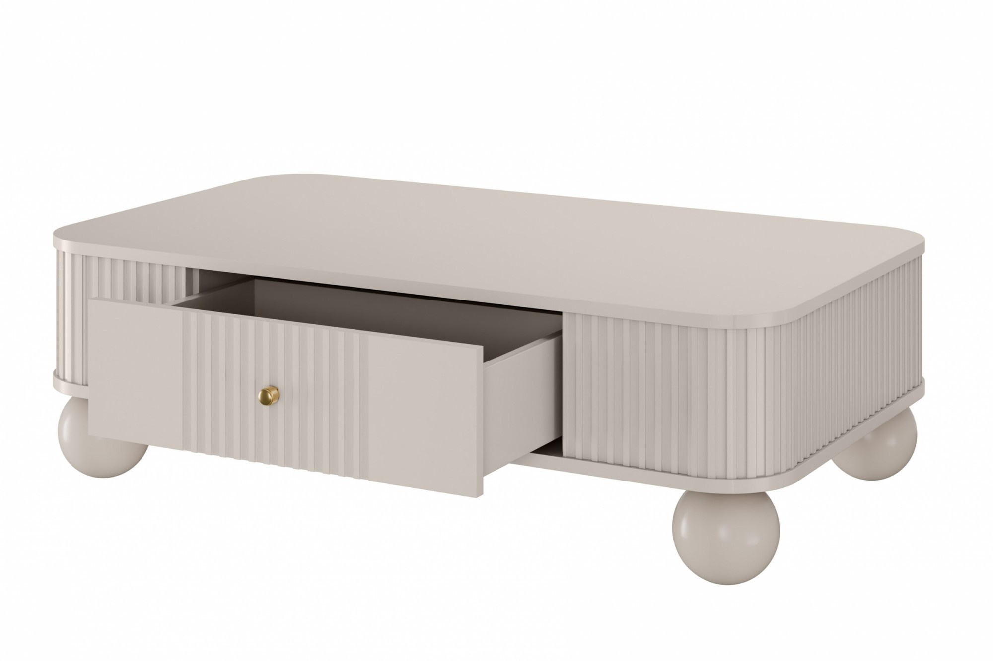 Stolik kawowy z szufladą Vesper 103x60 cm - kaszmir / złote uchwyty, Szerokość: 103, Wysokość: 32, Głębokość: 60, Wysokość nóżek: 12, Głębokość blatu: , Montaż: