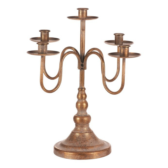 Kovový svícen s pěti rameny na kónické svíčky a výškou 40 cm v elegantní zlaté barvě, je nádhernou královskou ozdobou pro vaši vánoční výzdobu. Ochranná sklíčka a starožitný vzhled dodávají svícnu nadčasový šarm, díky kterému se stane ústředním prvkem vašeho interiéru. Je ideální nejen na Vánoce, ale i pro různé slavnostní příležitosti, kde se stane výrazným doplňkem, který zaujme zraky všech pozorovatelů.