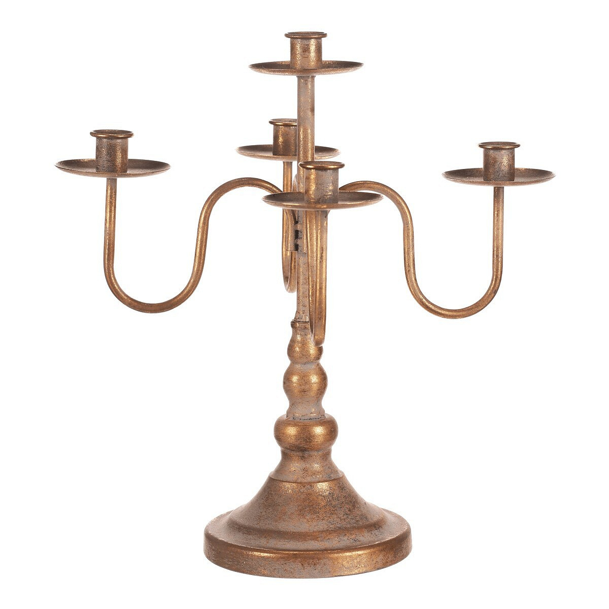 Svícen kovový - 5 ramen, na kónické svíčky, zlatý