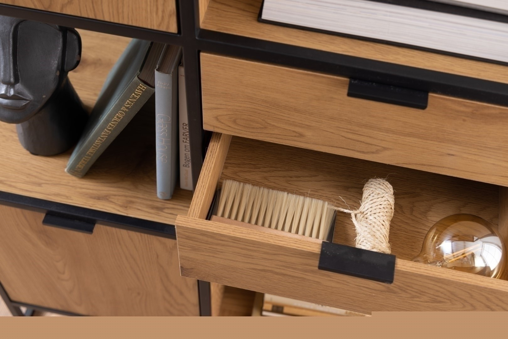 A Swindon polc sokoldalú bútor az irodába, nappaliba, hálószobába vagy gyerekszobába. Porfestett fémvázból és laminált MDF lap elemekből készült. A polcnak két szekrénye, három fiókja és három polca van. Lehet rajta könyveket, terítőket és más mindennapi szükségleteket tárolni, és ha úgy döntünk, hogy például ráhelyezünk valamit. váza virágokkal, a Swindon polc stílusos belső dekorációvá válhat. Kartondobozok száma: 2 Kartondobozok méretei: 90x43x9,5cm 145,5x85x10cm Kartondobozok súlya: 17,6kg 22,5kg