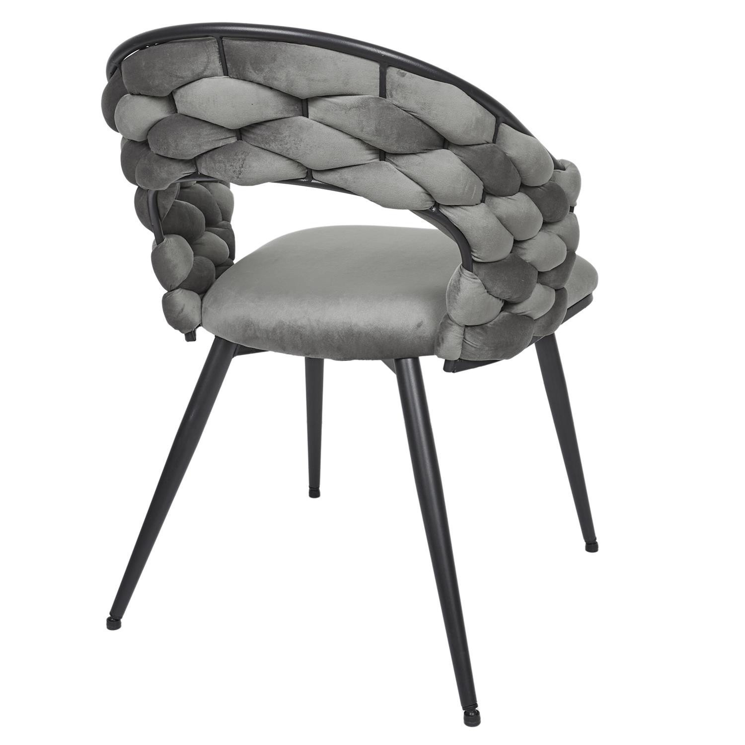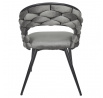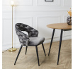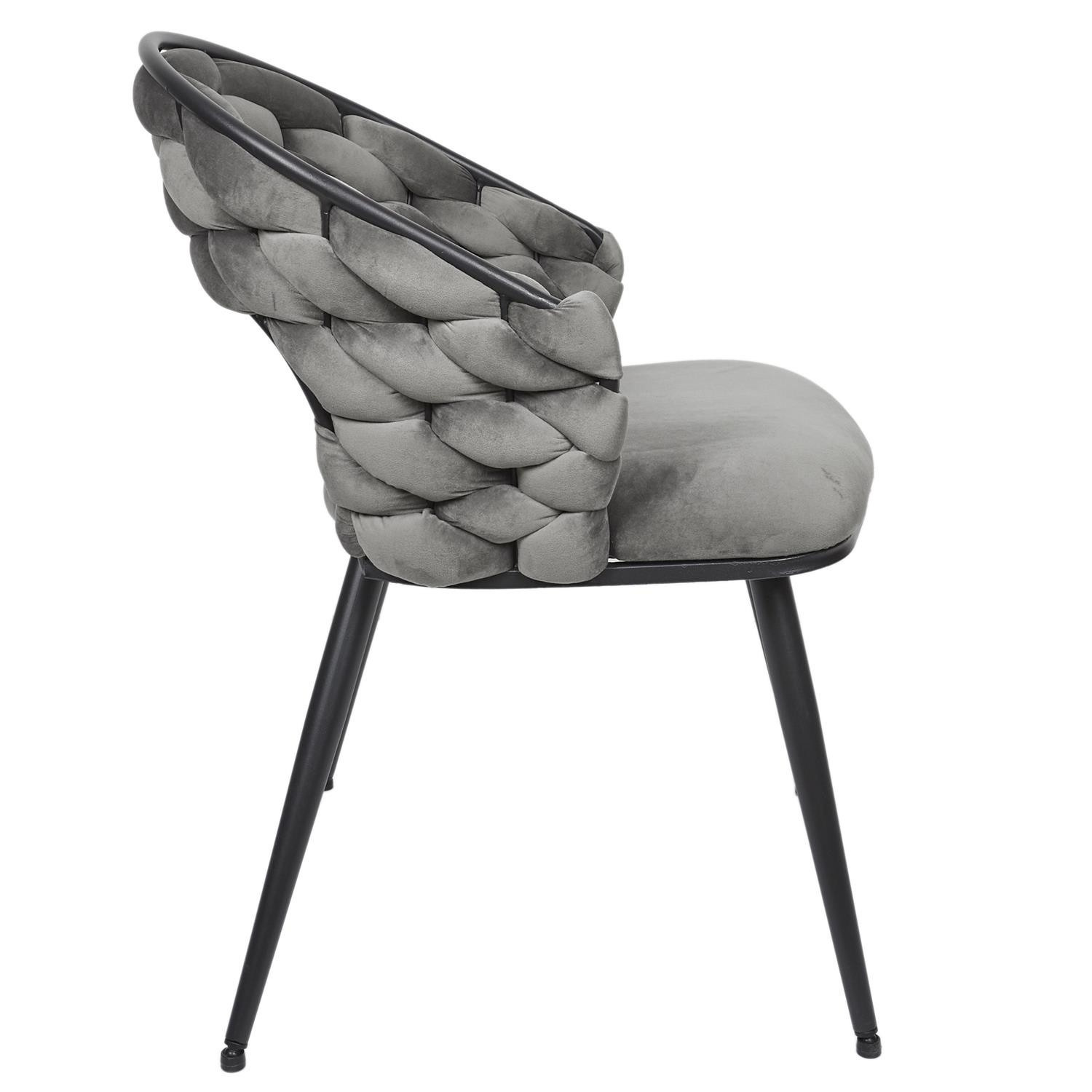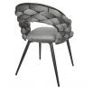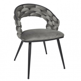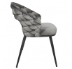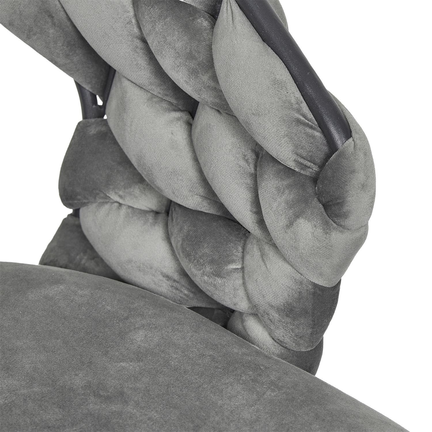A kárpitozott szék fonott háttámlával ideális bútordarab a glamour stílusú nappaliba. A puha, kellemes tapintású szövet rendkívül kényelmessé teszi a bútort. A profilozott háttámla fémből és habosított anyagból készült, szövettel borítva, amely úgy néz ki, mintha kötött lenne. Az ülőpárna puha kárpitozó habból készült. A szék talapzata fémből készült. Összeszerelést igényel Max. terhelés 110 kg