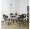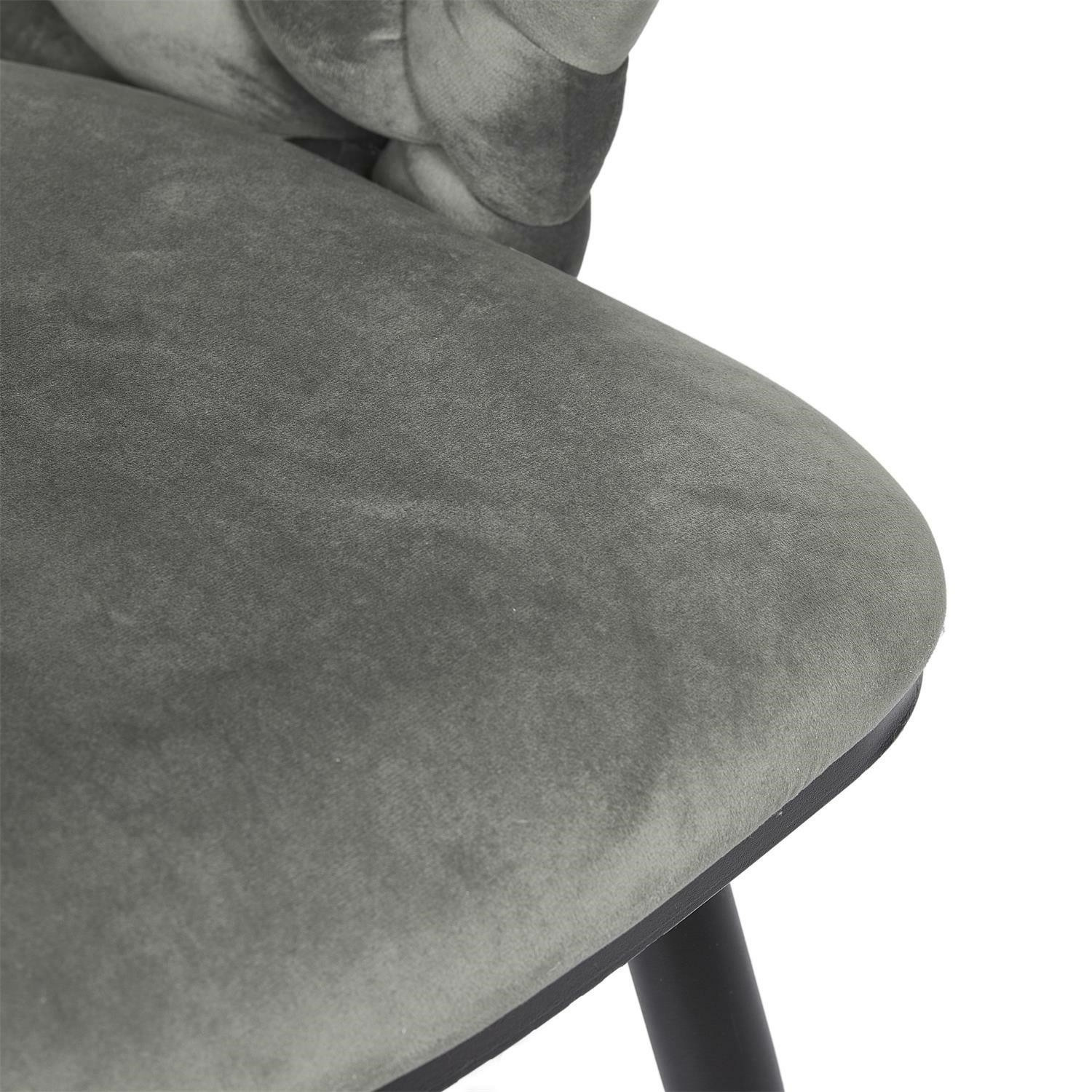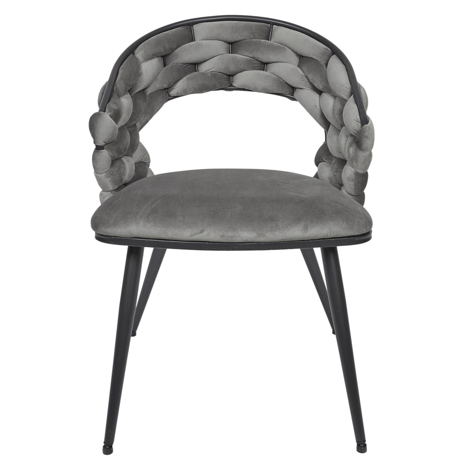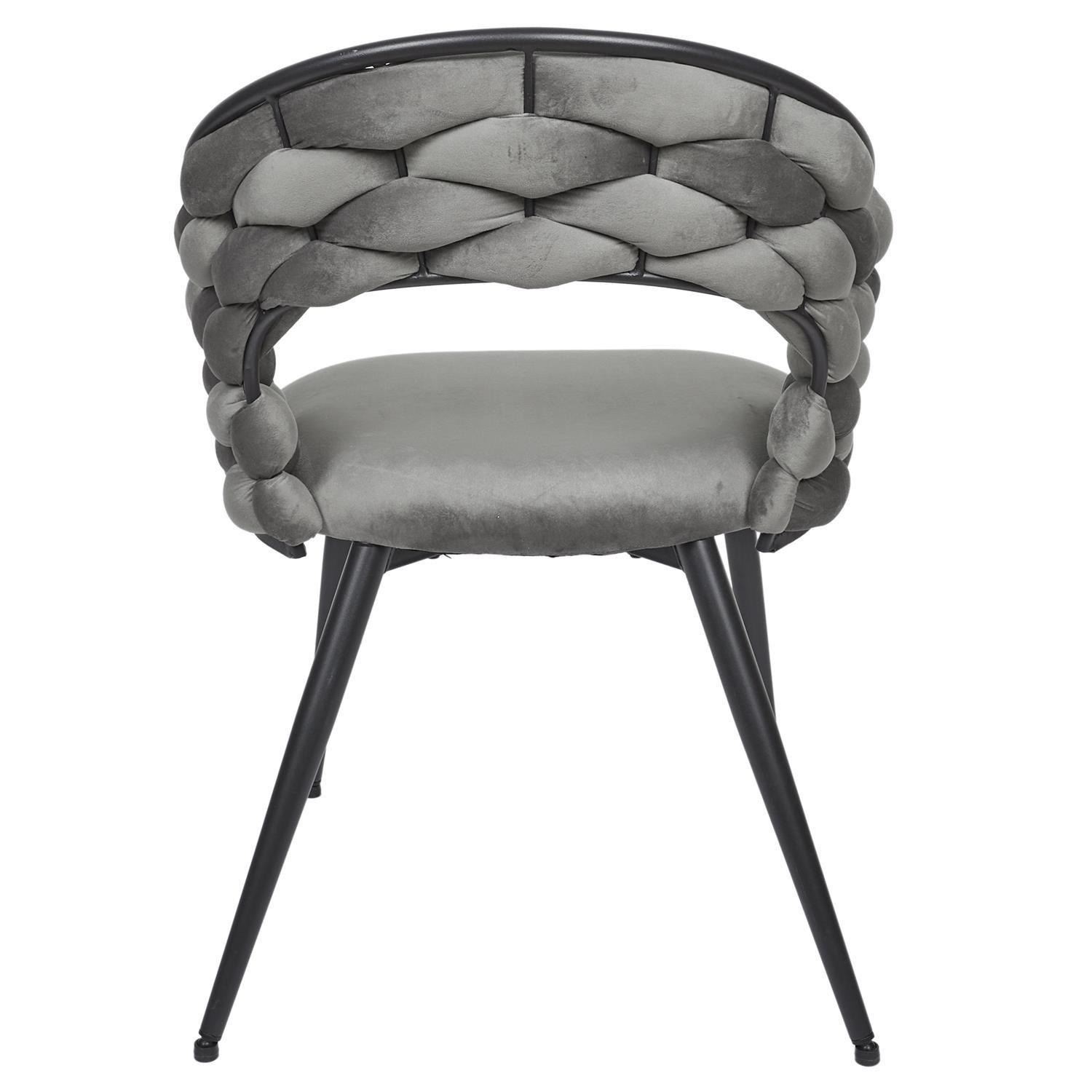 A kárpitozott szék fonott háttámlával ideális bútordarab a glamour stílusú nappaliba. A puha, kellemes tapintású szövet rendkívül kényelmessé teszi a bútort. A profilozott háttámla fémből és habosított anyagból készült, szövettel borítva, amely úgy néz ki, mintha kötött lenne. Az ülőpárna puha kárpitozó habból készült. A szék talapzata fémből készült. Összeszerelést igényel Max. terhelés 110 kg