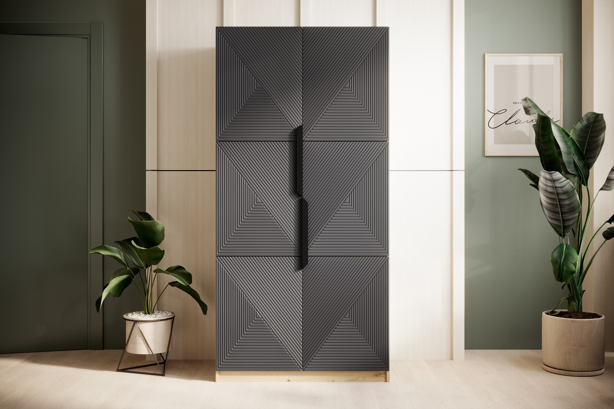 Szafa Asha z ryflowanym frontem i metalowymi uchwytami 100 cm - artisan / rivier stone mat / czarne uchwyty, Szerokość: 100, Wysokość: 207, Głębokość: 55, Wysokość nóżek: , Głębokość blatu: , Montaż:
