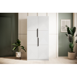 Szafa Asha z ryflowanym frontem i metalowymi uchwytami 100 cm - biały mat / czarne uchwyty, Szerokość: 100, Wysokość: 207, Głębokość: 55, Wysokość nóżek: , Głębokość blatu: , Montaż: