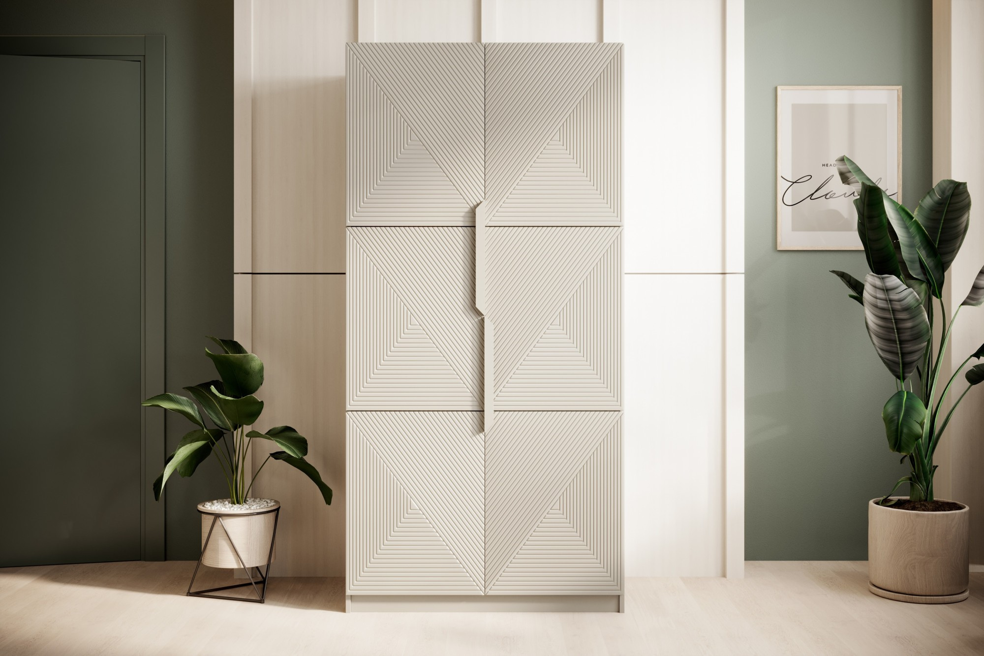 Szafa Asha z ryflowanym frontem i metalowymi uchwytami 100 cm - kaszmir / kaszmirowe uchwyty, Szerokość: 100, Wysokość: 207, Głębokość: 55, Wysokość nóżek: , Głębokość blatu: , Montaż: