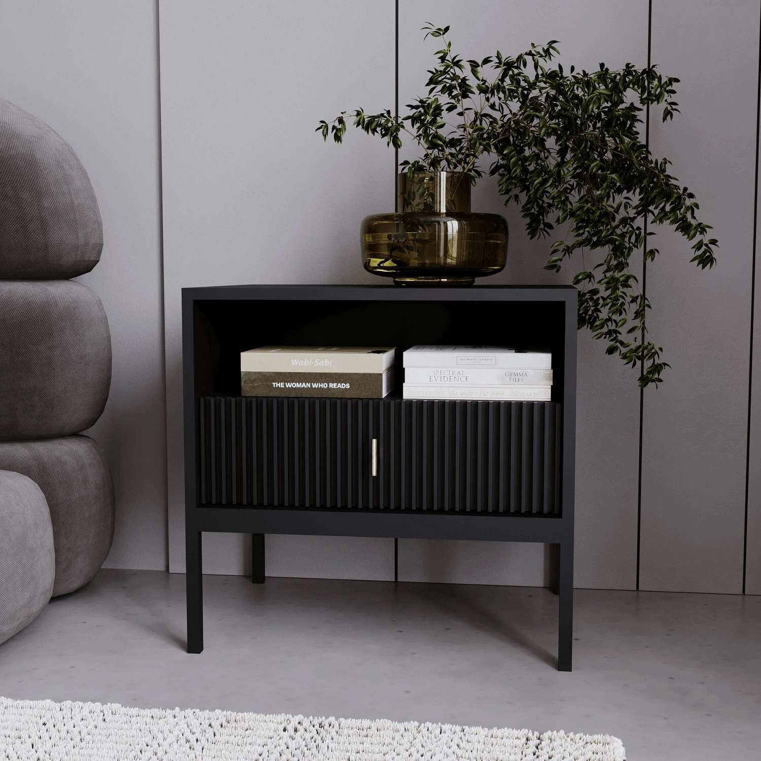 Szafka Nocna MARCOS Ryflowana Czarna