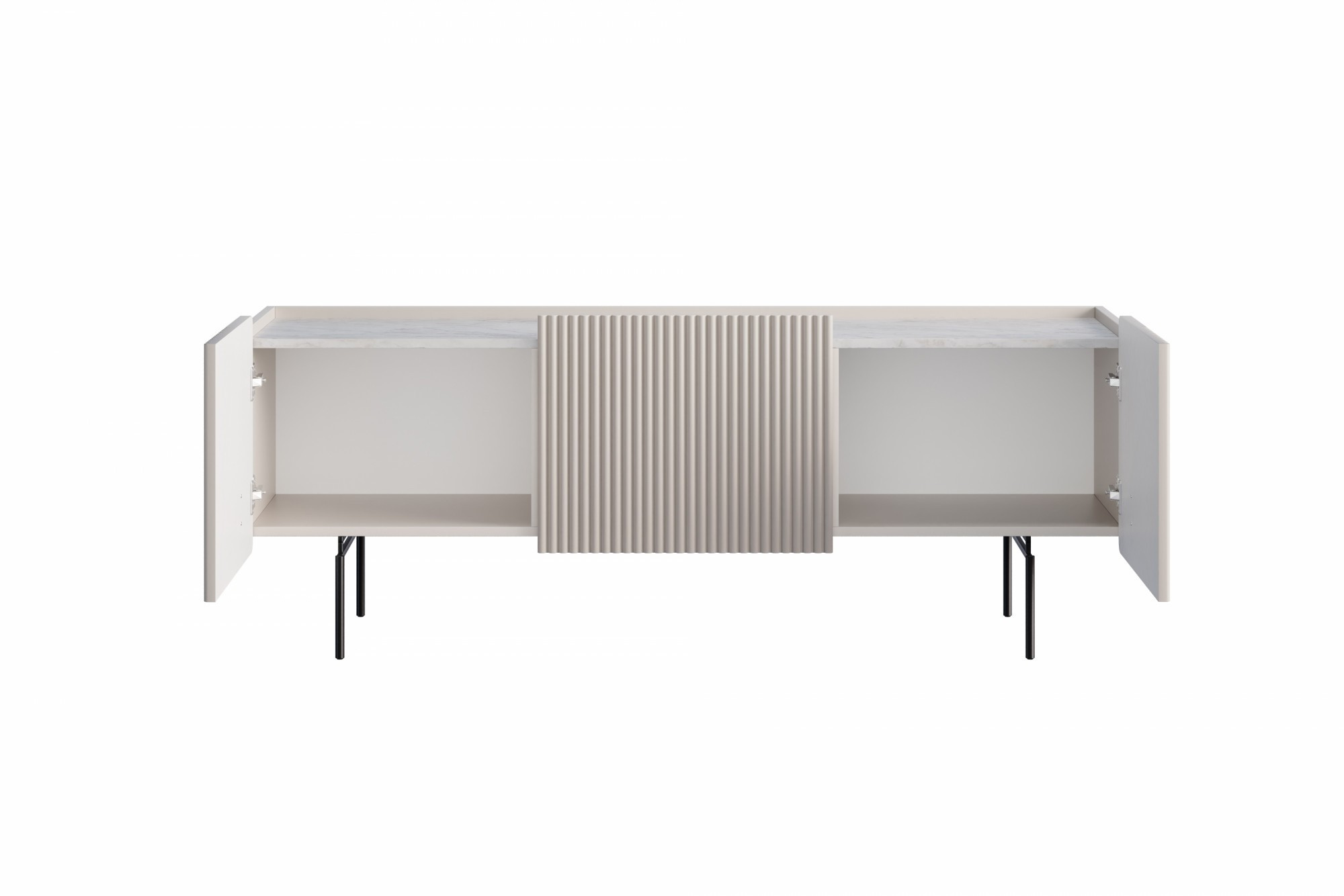 Szafka RTV Malmi 150 cm - kaszmir / crema bianca / czarne nóżki, Szerokość: 150, Wysokość: 57, Głębokość: 42, Wysokość nóżek: 17,5, Głębokość blatu: , Montaż: