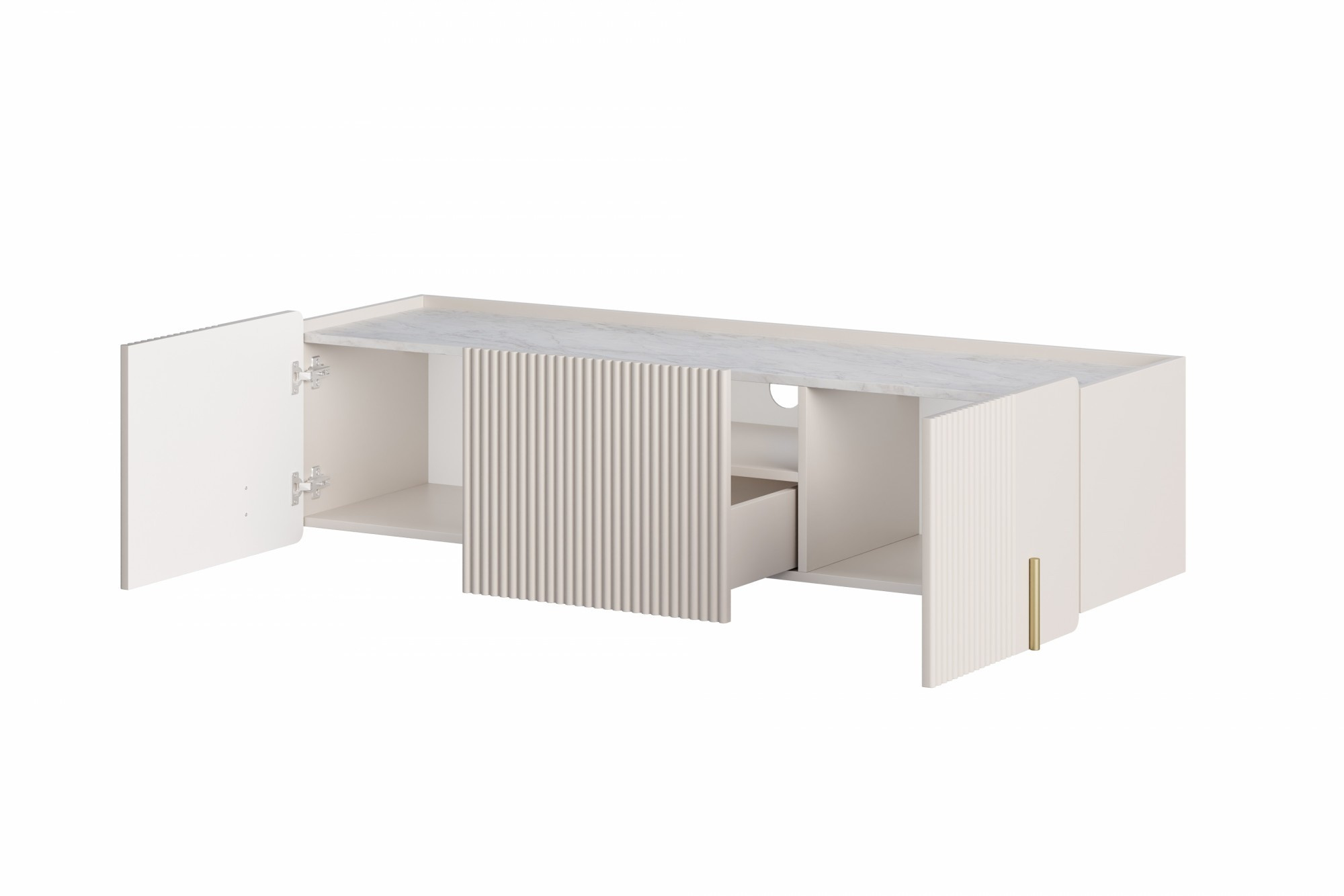 Szafka RTV Malmi 150 cm wisząca - kaszmir / crema bianca / złoty