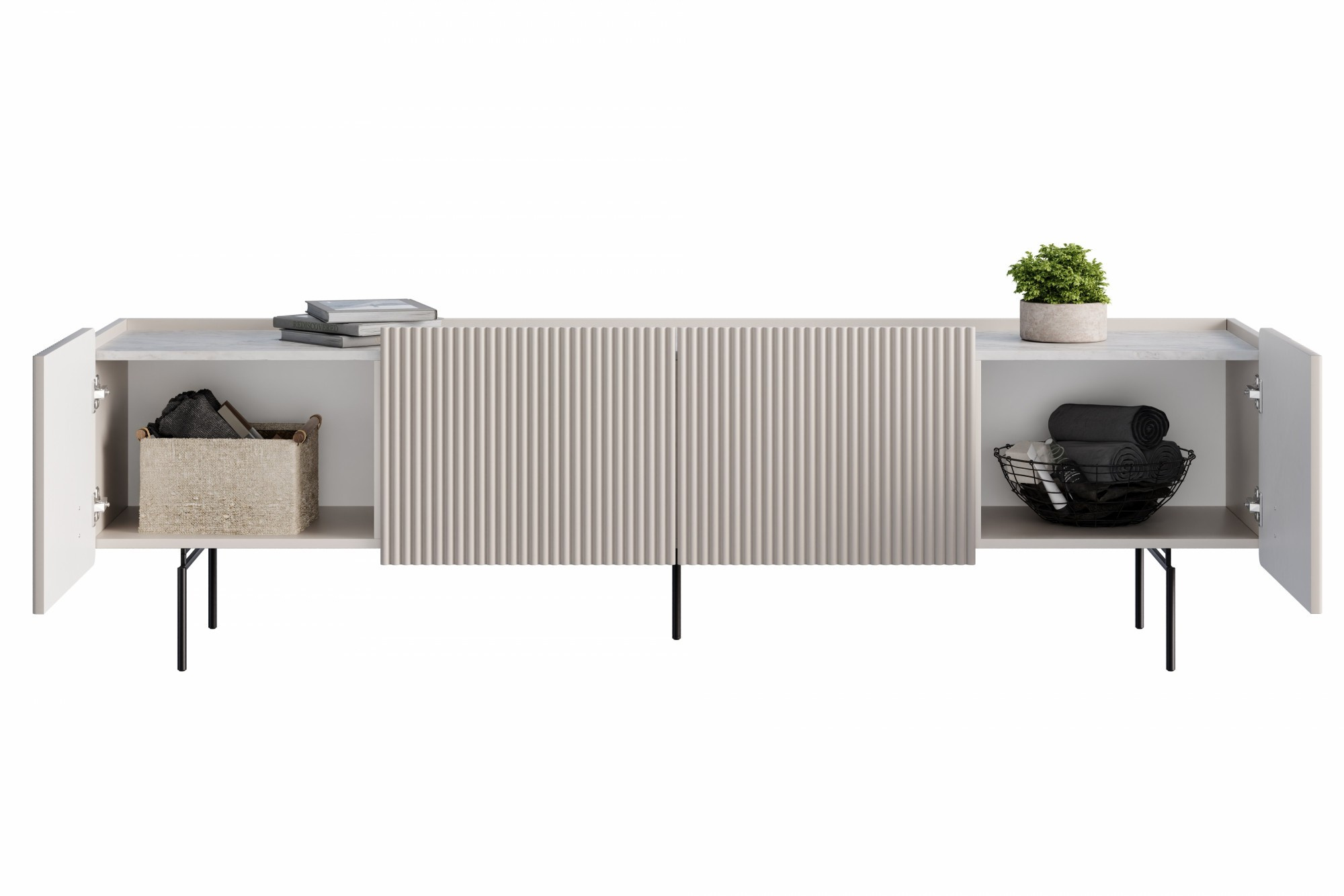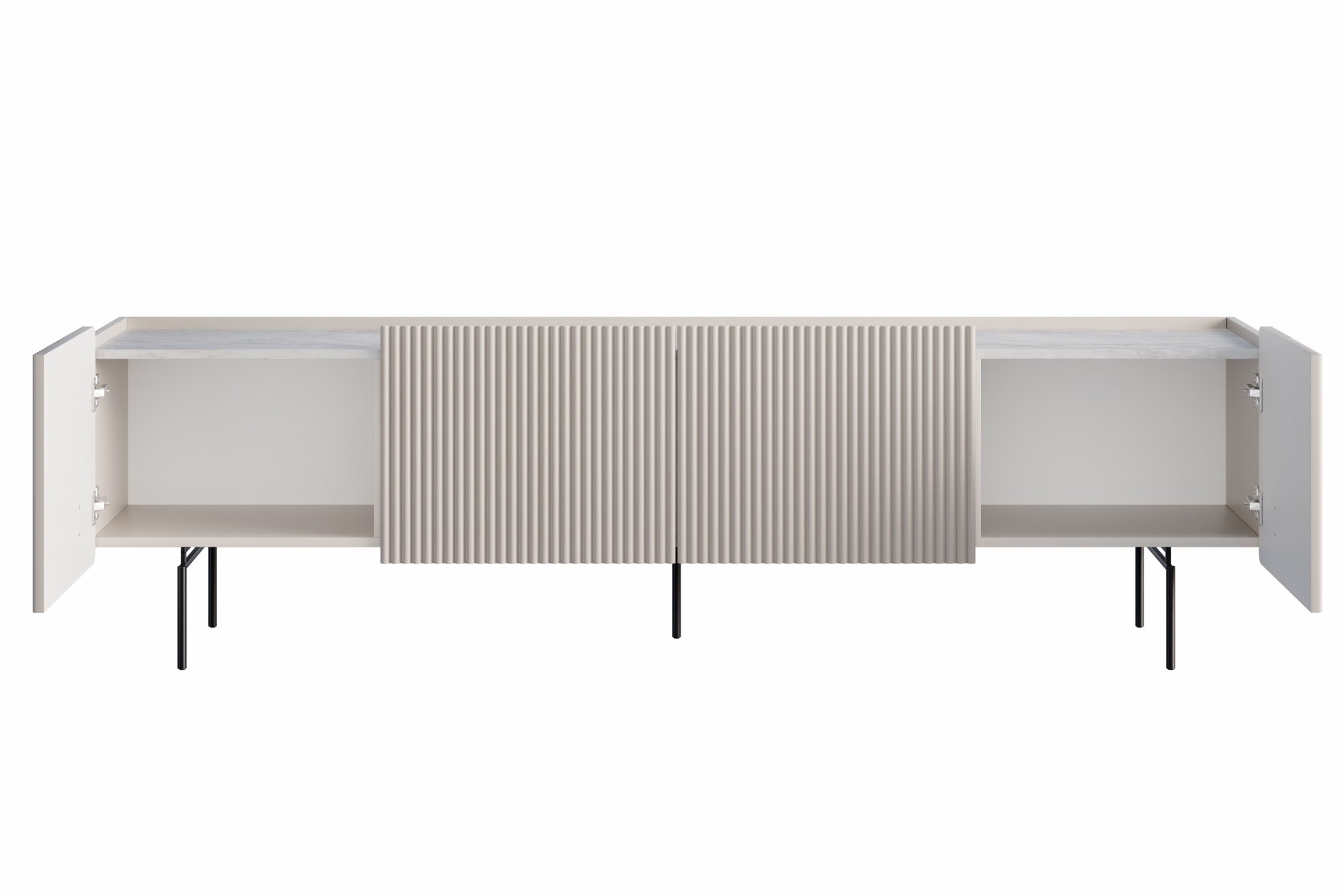 Szafka RTV Malmi 200 cm - kaszmir / crema bianca / czarne nóżki, Szerokość: 200, Wysokość: 57, Głębokość: 42, Wysokość nóżek: 17, Głębokość blatu: , Montaż: