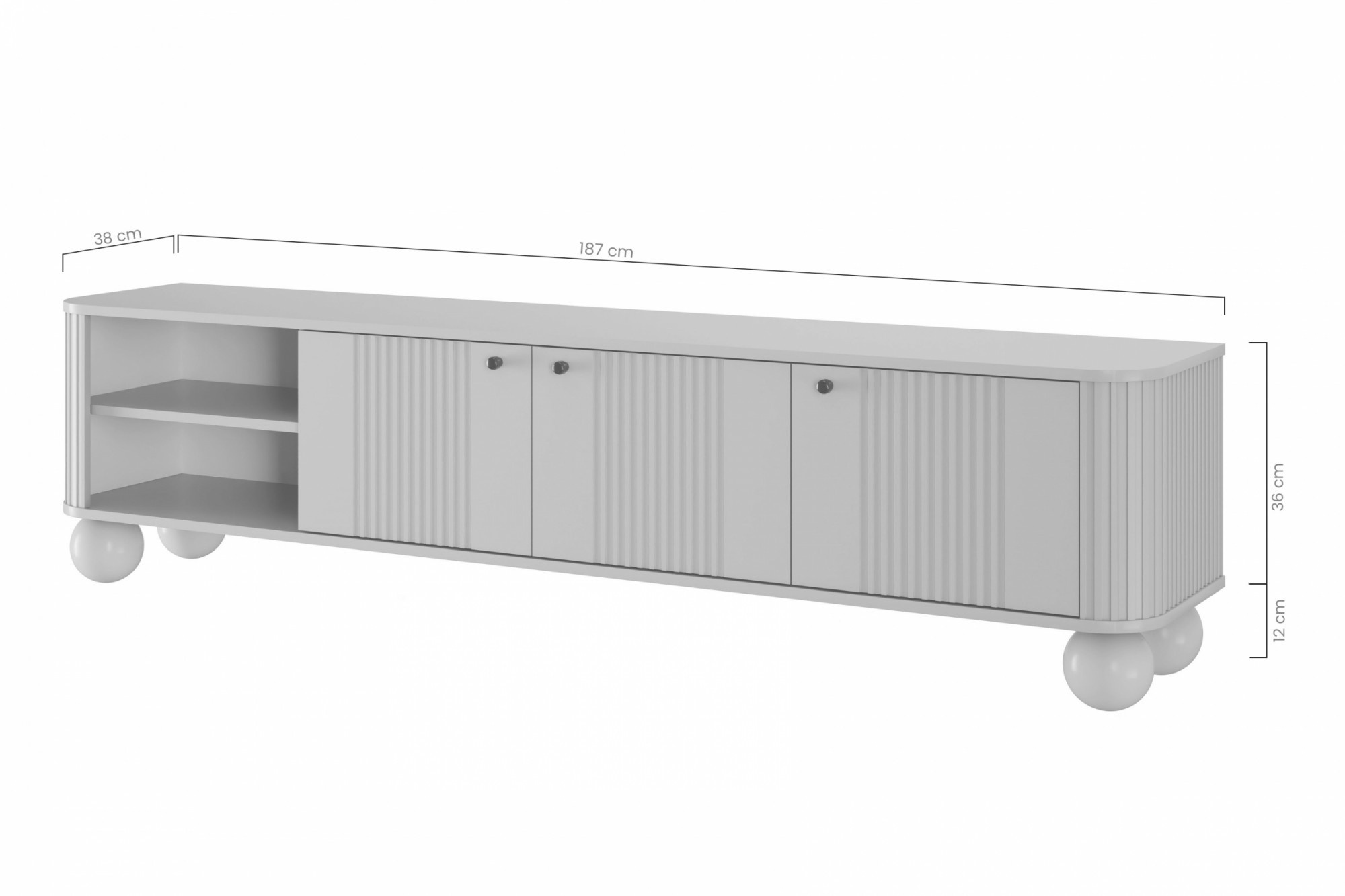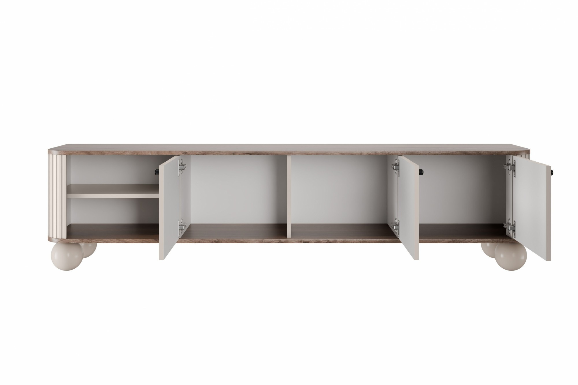 Szafka RTV Vesper 3D 187 cm - kaszmir / orzech / czarne uchwyty / nogi kule, Szerokość: 187, Wysokość: 48, Głębokość: 38, Wysokość nóżek: 12, Głębokość blatu: , Montaż: