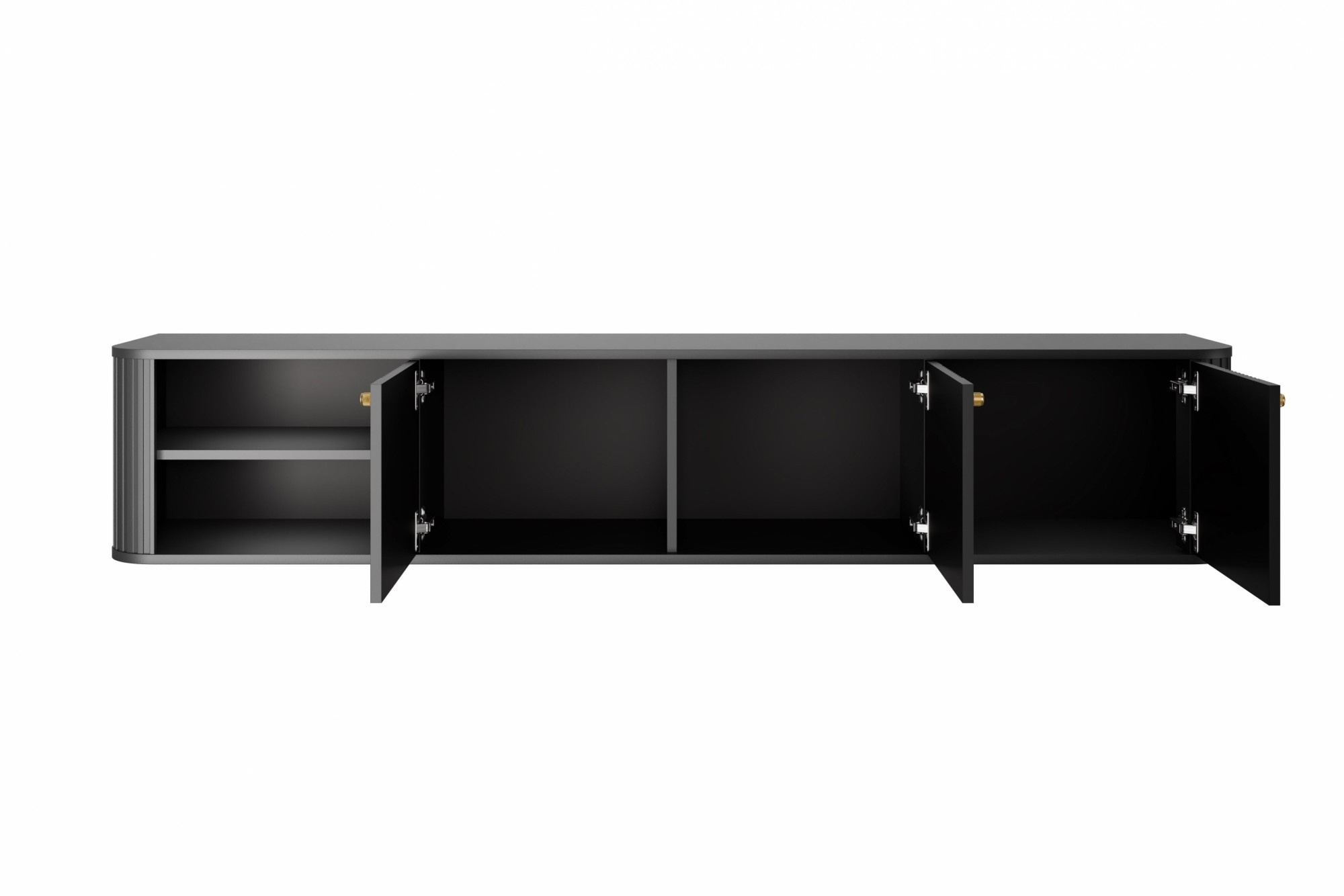 Szafka RTV Vesper 3D wisząca 187 cm - czarny / złote uchwyty, Szerokość: 187, Wysokość: 36, Głębokość: 38, Wysokość nóżek: , Głębokość blatu: , Montaż: