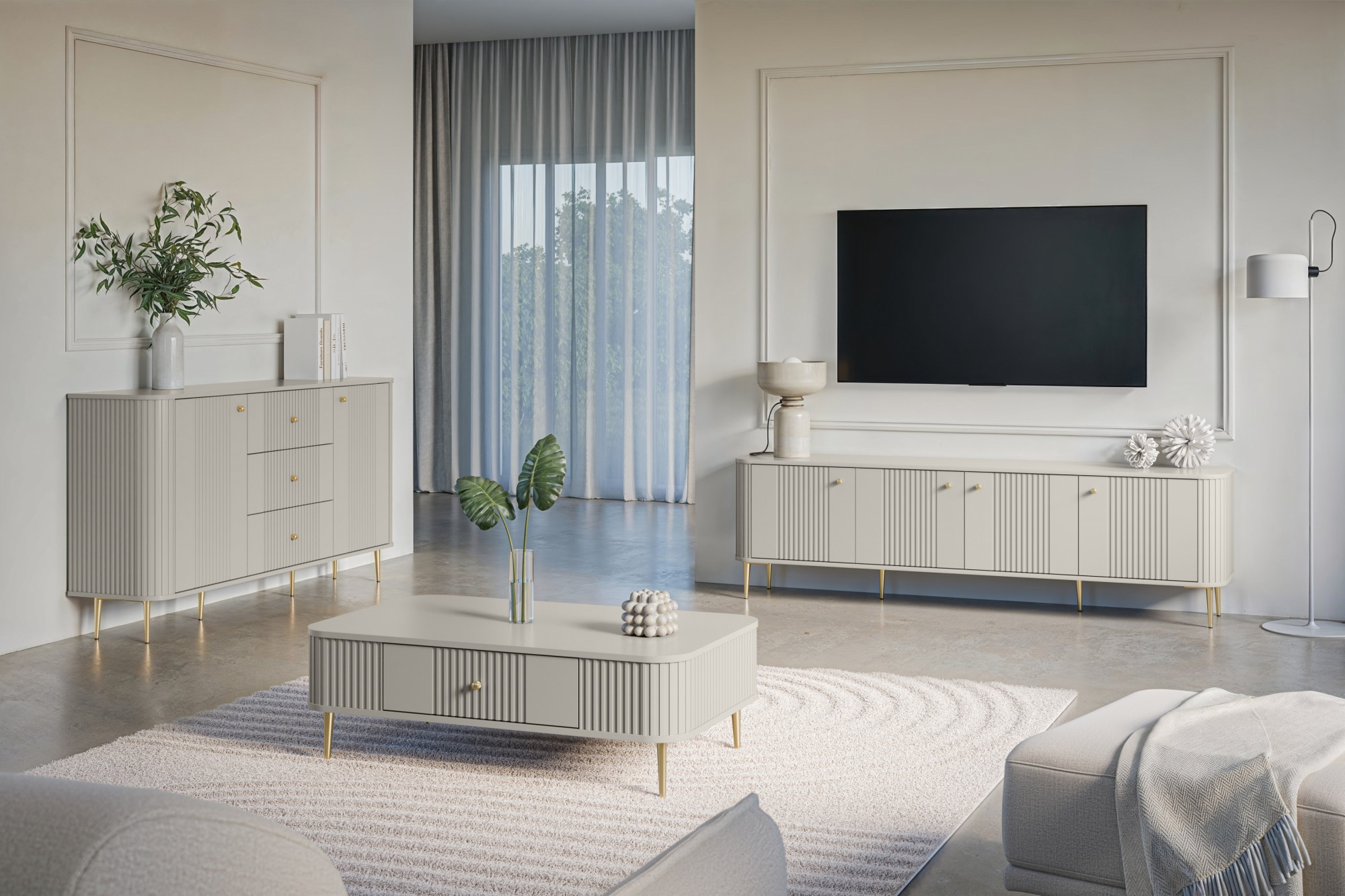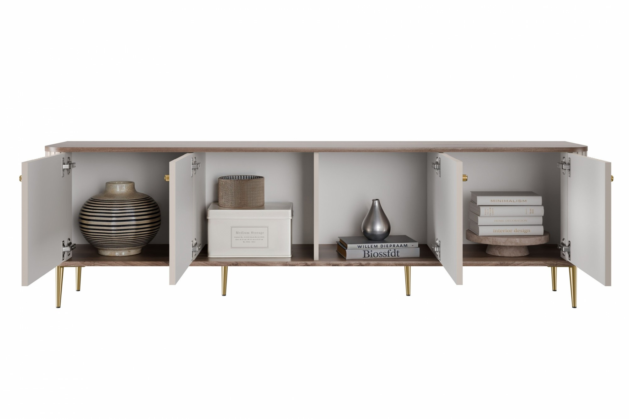 Szafka RTV Vesper 4D 187 cm - kaszmir / złote nogi