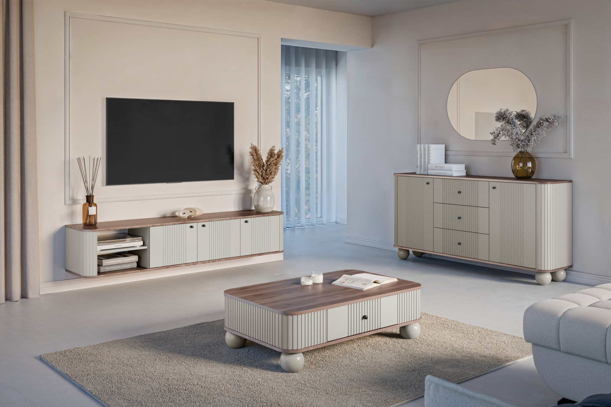 Szafka RTV wisząca Vesper 3D 187 cm - kaszmir / orzech / czarne uchwyty, Szerokość: 187, Wysokość: 36, Głębokość: 38, Wysokość nóżek: , Głębokość blatu: , Montaż: