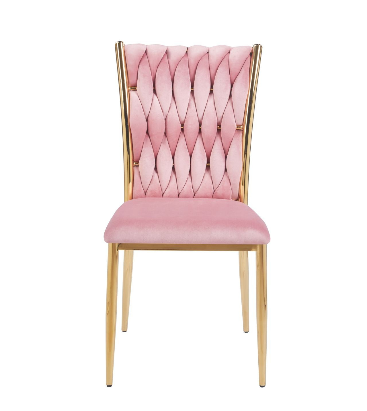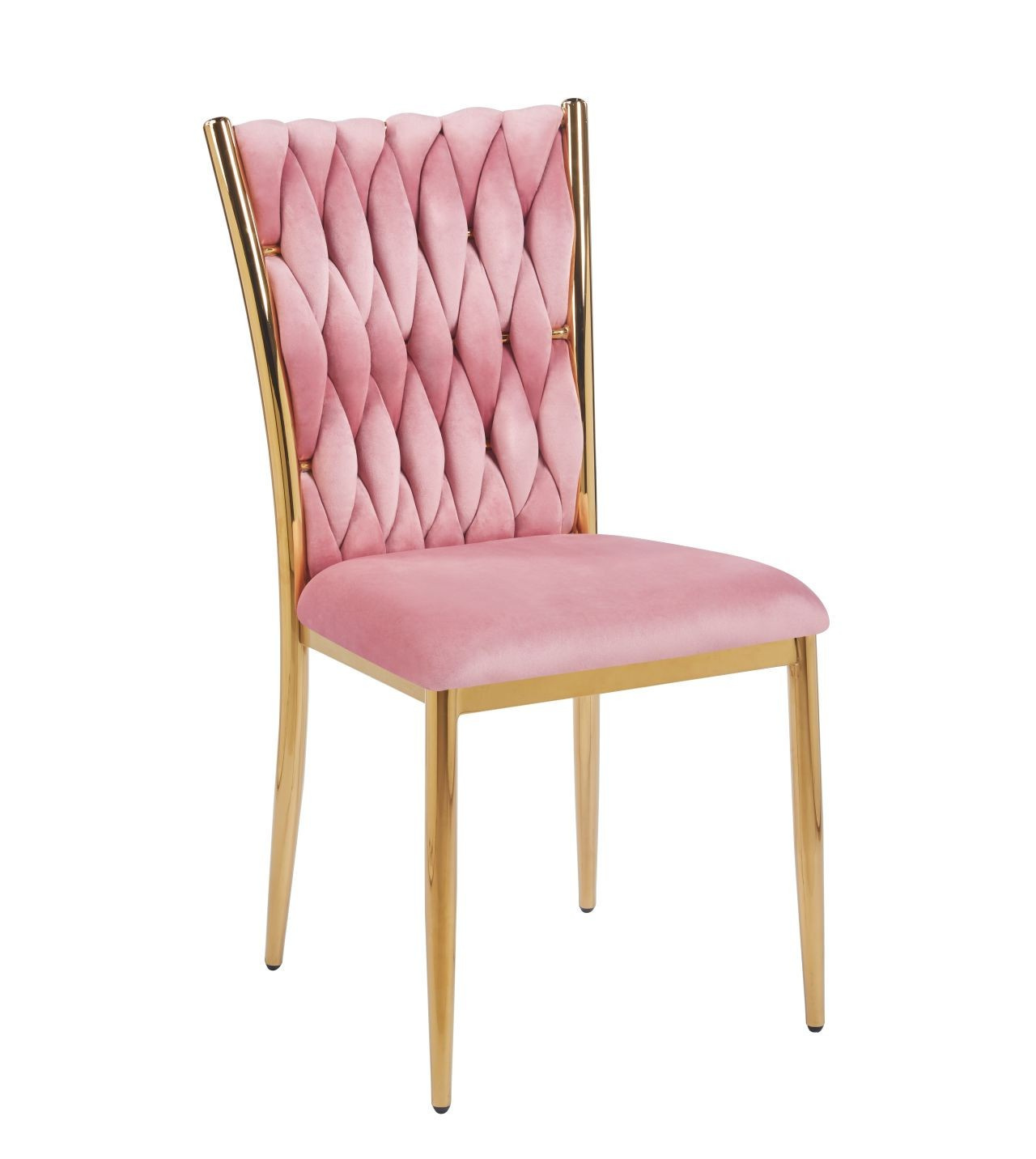 Méretek: - ülés szélessége: 42 cm - teljes szélesség: 47 cm - ülés magassága: 46 cm - teljes magasság: 95 cm - ülés mélysége: 42 cm Anyag: - kárpit: bársony - szerkezet: króm Szín: - ülés + háttámla: rózsaszín - szerkezet: arany