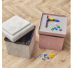 Gyermeked szobáját ellepték a mindenütt jelenlévő kockák? Kifogytál már az ötletekből a biztonságos tárolásukhoz? A mi puffunk ideális megoldás az ön számára. A Pufa Legina egy esztétikus, modern bútor, amely leginkább a gyerekszobába illik. Ez a rendkívül kényelmes ülés szürke színű szövettel van bevonva. A felső része ráadásul puha habbal van borítva, ami növeli a használat kényelmét. A Pufa Legina több rejtett lehetőséget rejt magában. Nemcsak hogy lehetővé teszi, hogy gyermeked pihenjen a szórakozás után. Ez egy okos tároló is a Lego kockák tárolására. A puff kinyílik, és felfedi a fedél alá szerelt táblát, amelyhez könnyen rögzíthetők a kockák. A használaton kívüli puffot ráadásul össze lehet hajtani - így tároláskor valóban nagyon kevés helyet foglal. Készült MDF lapból és kárpitos habból, szövettel bevonva.