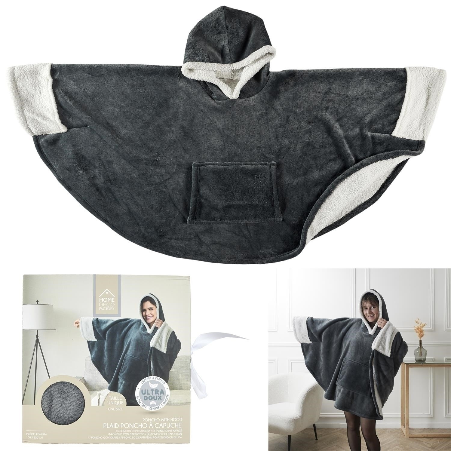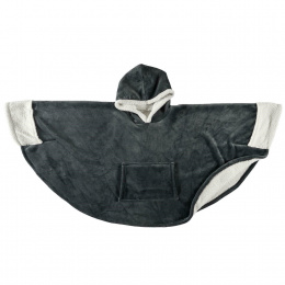 Meleg szövetből készült, fehér, puha béléssel, a poncsó jól beválik a hűvös estéken a teraszon vagy az őszi hideg napokon. A poncsó segít a regenerálódásban a téli átfagyás után. Kapucnival és zsebbel van ellátva, ahová például további dolgokat rejthetünk el. fagyott kezek.