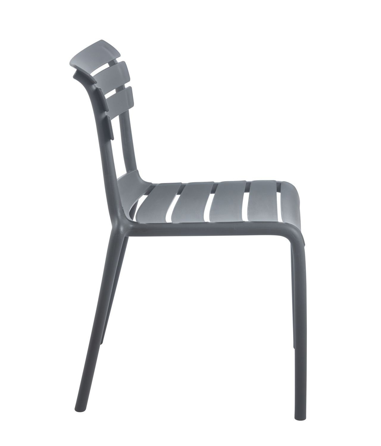 Méretek: - magasság: 81 cm - szélesség: 42 cm - mélység: 45 cm - ülésmagasság: 46 cm Anyag: - PP műanyag Szín: - szürke Továbbiak: - UV védelem - rakásolható