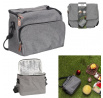 A szürke hűtőtáska nélkülözhetetlen megoldás, amely lehetővé teszi, hogy könnyedén magával vigye az ételt útközben. Függetlenül attól, hogy tengerparti pikniket, kerékpártúrát vagy hosszú autóutat tervez, ez a táska biztosítja az ideális feltételeket az ételek tárolására és szállítására. Fő összetételét kiváló minőségű textíliák alkotják, amelyek egyszerre tartósak és esztétikusak. Ez az anyag hatékony hőszigetelést biztosít, megőrzi ételei hőmérsékletét. Ennek köszönhetően bárhol is vagy, élvezheted az ételeid frissességét és ízét. A praktikus fogantyúk kényelmes táskahordozást tesznek lehetővé, és az erős cipzár biztonságos zárást biztosít. Ráadásul ez a táska könnyű és kompakt, így könnyen összehajtható és tárolható, amikor nincs használatban. Anyag: Szövet, öko bőr, alumínium fólia