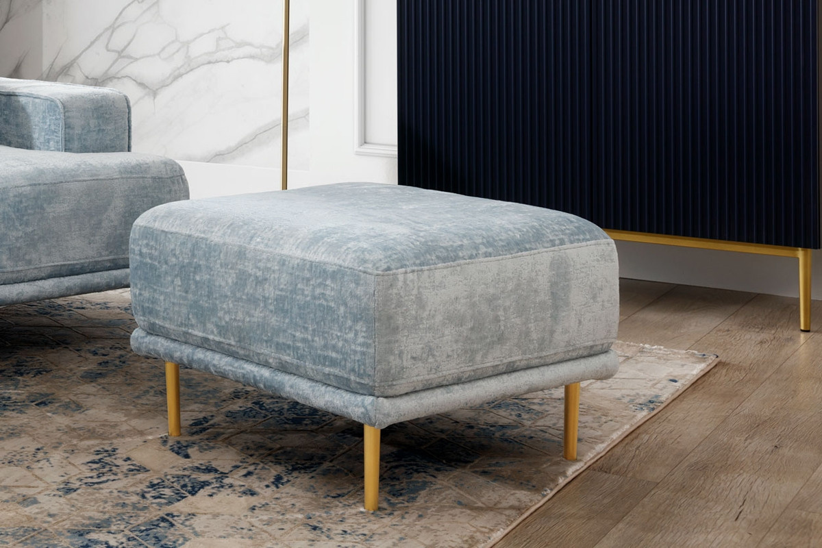 Puf je v designu obývacího pokoje často přehlíženým kusem nábytku. Souhlasíte s tím, že špatně? Hledáte ideální návrh, na kterém byste si po dlouhém dni v práci protáhli unavené nohy? Mám něco jen pro vás! Tento model je nejen velmi praktický! Je to také zajímavý doplněk, který vypadá skvěle vizuálně a ladí s kompozicí zbytků modernistických interiérů. Zlaté nohy působí nesmírně elegantně. Sedák je navíc vyroben z vlnitých pružin a vysoce elastické pěny HR, která zajišťuje vysokou úroveň pohodlí.moderní čalouněný puf Nicole, šířka: 60, výška: 40, hloubka: 60.