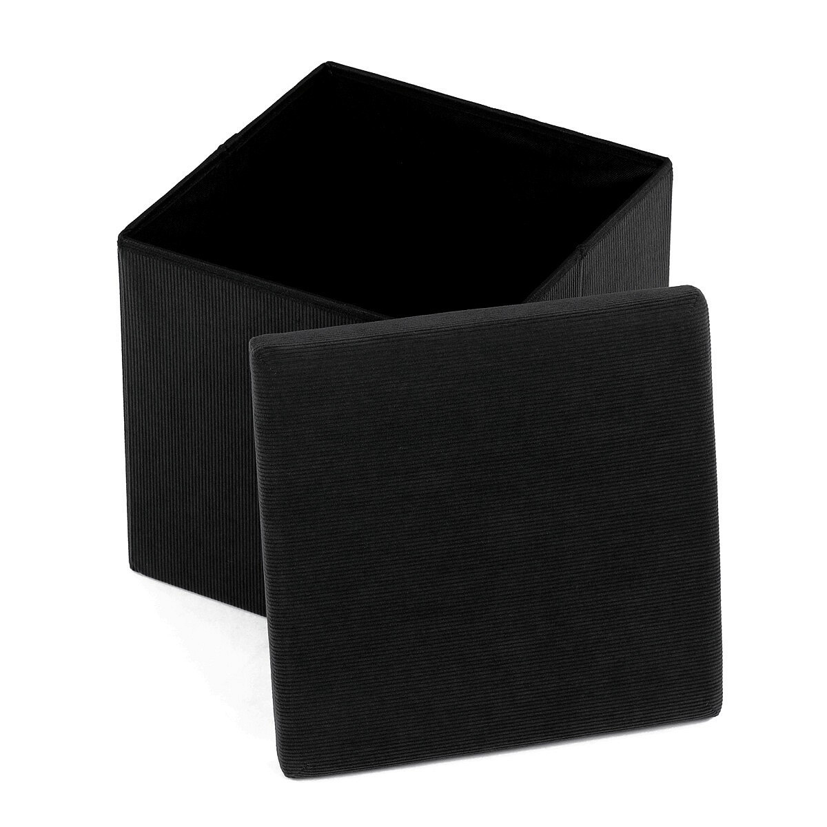 Taburet s úložným prostorem, černá, manšestrová látka, TAB-471 BK6