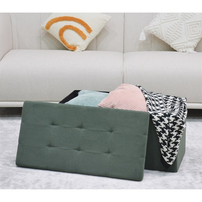 Taburet s úložným prostorem, zelená, manšestrová látka, TAB-472 GRN6