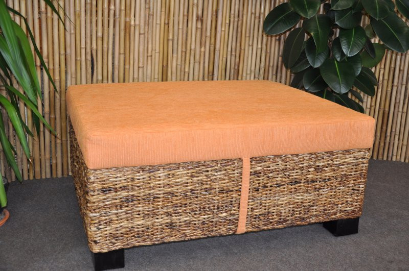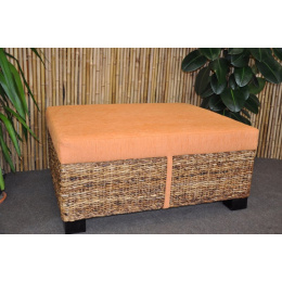 Taburetka s masivní mahagonovou konstrukcí a výpletem z banánového listu. | Velikost taburetky 100x80 cm, výška s polstrem 42 cm Pozor - taburetku máme se žlutým plstrem.