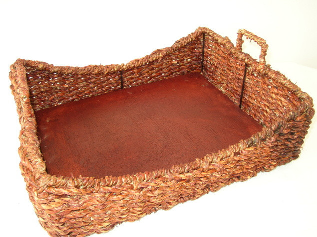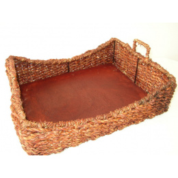Tác s pevnou ocelovou konstrukcí a dřevěným dnem s výpletem z mořských řas. | Velikost tácu je 46x36 cm