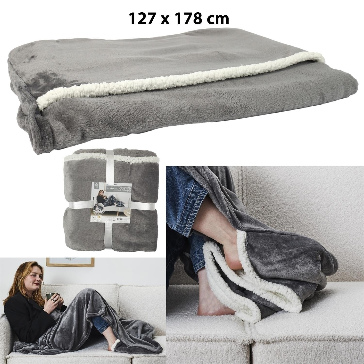 A szürke, puha takaró lábzsebbel ideális megoldás azok számára, akik gyakran fáznak. A lábak felmelegítése egy fárasztó, hideg nap után megkönnyebbülést hoz, és a gondolat, hogy csak be kell dugni őket egy speciálisan előkészített zsebbe, csak ösztönzi ennek a takarónak a használatát. Takaró meleg polárból és báránybőrt utánzó anyagból készült. Anyag: 100% poliészter. Gépi mosásra alkalmas