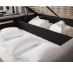 The Tapedo bedroom bed combines modern design, functionality, and sleeping comfort. Available in three size variants: 140x200 cm, 160x200 cm, and 180x200 cm, it allows you to adjust the width to your individual needs – 165 cm, 185 cm, or 205 cm respectively. The total height of the bed is 131 cm and the depth is 221 cm, giving the construction an elegant and well-balanced appearance. The filling made of high-quality polyurethane foam T2130 ensures optimal body support and excellent comfort. The Tapedo bed is equipped with a practical bedding storage compartment that makes it easy to keep your bedroom organized. Stable black plastic legs add lightness and a contemporary touch to the design. Thanks to its solid craftsmanship, functional features, and aesthetic form, the Tapedo bed perfectly complements modern interior arrangements, creating an elegant and cozy resting space.