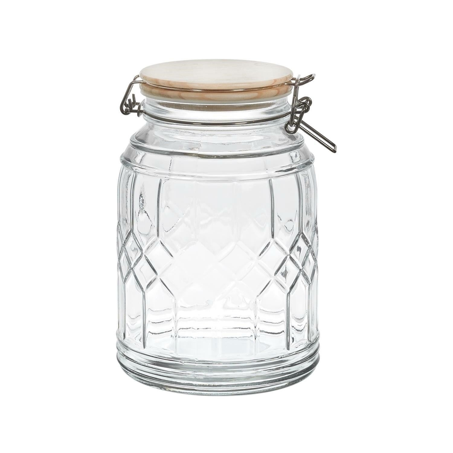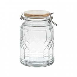 Tárolja termékeit elegáns és praktikus módon ezzel az 1,8 literes üveggel. Az üveg szoros bambusz fedéllel van ellátva, amely biztosítja a tárolt termékek frissességét, és természetes varázst kölcsönöz minden belső térnek. Hosszúság: 13,6 cm Magasság: 20,3 cm Mélység: 13,6 cm Átmérő: 13,6 cm Súly: 840 gramm Anyag: Üveg, bambusz, rozsdamentes acél, szilikon