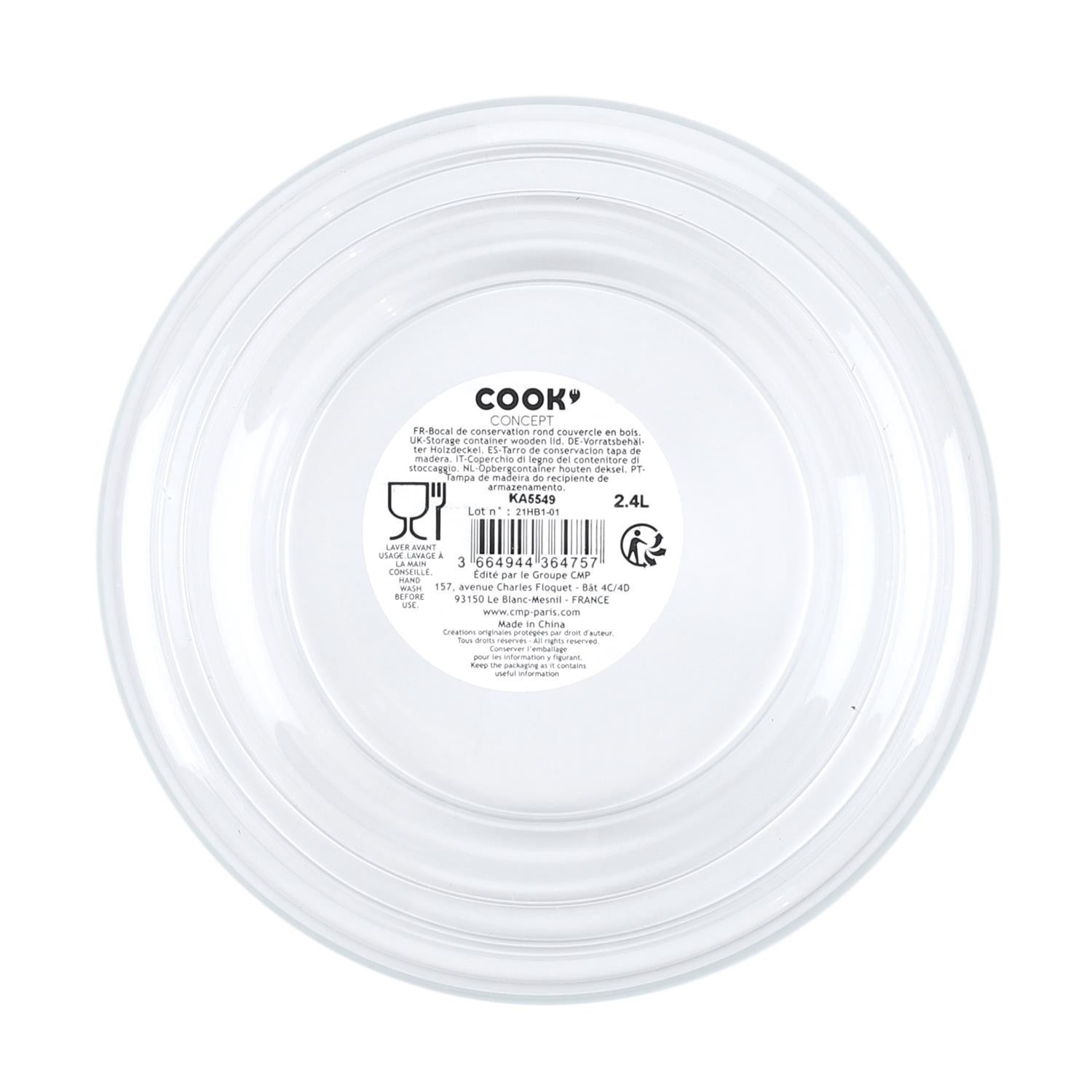 Tárolóüveg fa fedéllel, 2,4 l