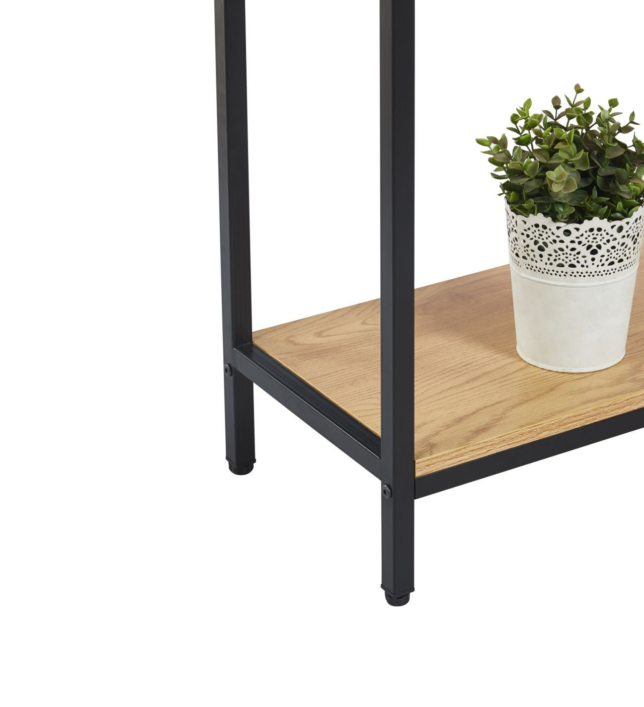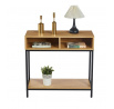 MÉRETEK: - mélység: 30 cm - szélesség: 80 cm - magasság: 75 cm ANYAG: - laminált forgácslap + porszórt festett fém SZÍN: - természetes tölgy + fekete EGYÉB: - két nyitott polc