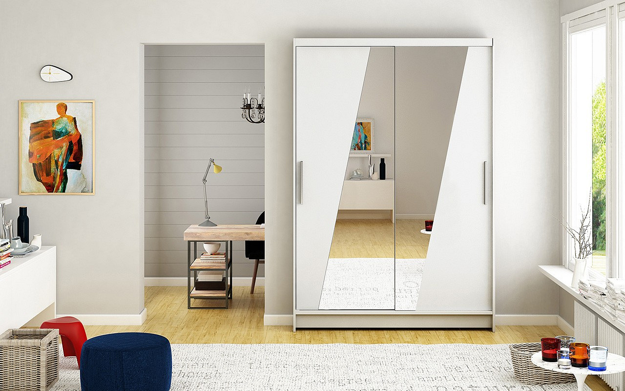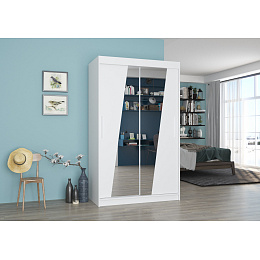 TEXAS 120 tolóajtós és tükrös ruhásszekrény Fehér+Fehér
