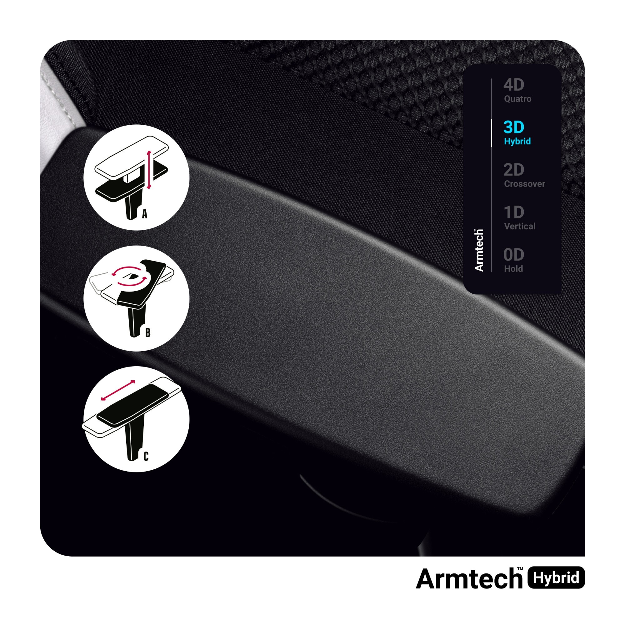 Az X-Player szék széleskörű beállítási lehetőségeket kínál, hogy ergonómiáját pontosan az Ön igényeihez igazíthassa. A tartós Armtech™ Hybrid SoftTouch kartámaszok három síkban állíthatók, így optimális támogatást nyújtanak a vállaknak, alkaroknak és csuklóknak. A karfák felületén lévő puha hab növeli a kényelmet és csökkenti a fáradtságot.