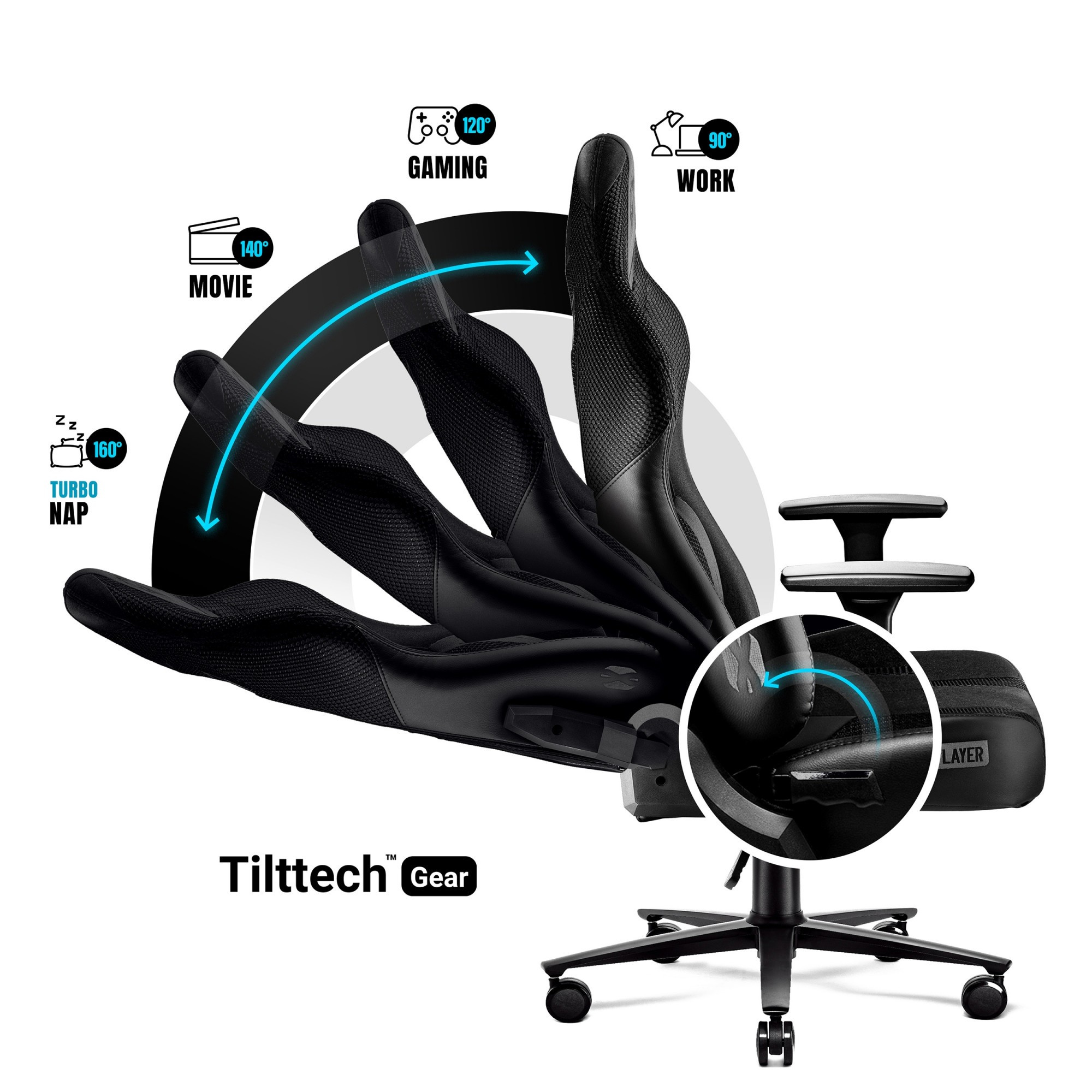 A Tilttech™ Gear mechanizmus lehetővé teszi a háttámla dőlésszögének beállítását, és a beépített Tilttech™ Swing rendszer relaxáló hintázást biztosít a széken.