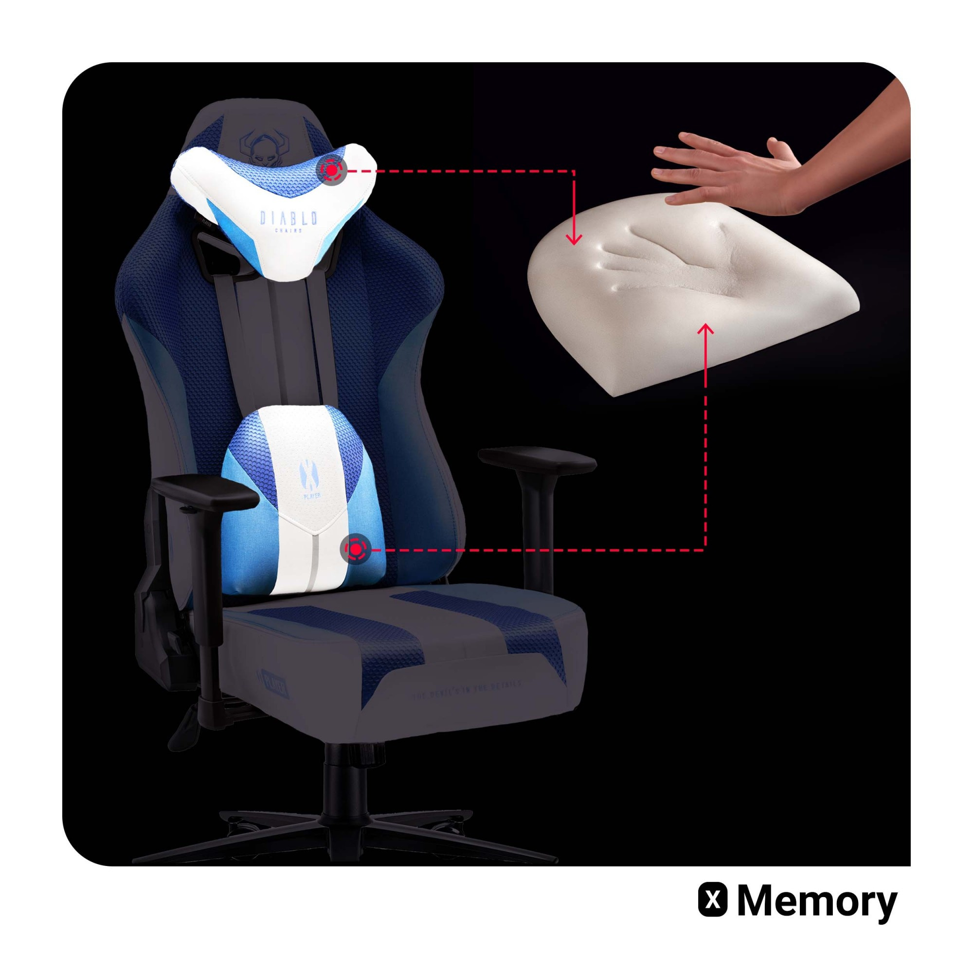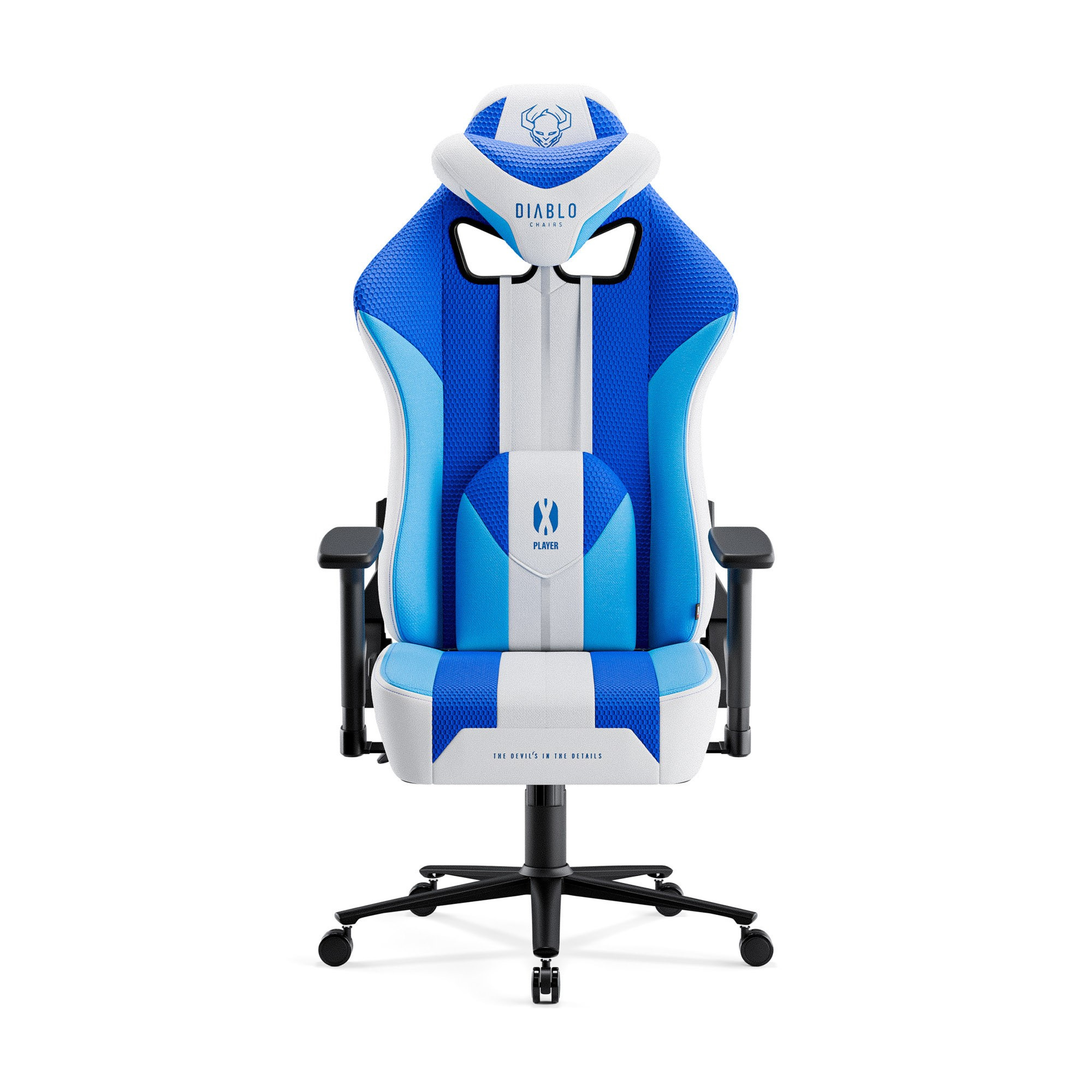 X-Player elegáns fehér-kék Frost White kivitelben több, mint egy szék. Ez egy nyilatkozat. Nyilatkozat a játék iránti szenvedélyedről, a stílusérzékedről és az egészségedről. Masszív sziluettje, hipnotizáló logói és kellemes tapintású szövetkárpitozása a játékteret a játék tökéletességének központjává alakítja.