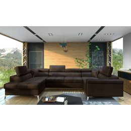 Thiago is a multifunctional, elegant and spacious U-shaped corner sofa that can be a luxurious finishing touch to any living room. It is a high-quality piece of furniture, synonymous with comfort and class, thanks to, among other things, innovative HR foam, which increases the elasticity and resilience of the seat. Behind the Thiago with dimensions of 350 x 202 x 90 cm, there is not only comfort, but also well-slept nights through a large sleeping surface. The folding type of the dolphin mechanism allows you to easily and effortlessly unfold the sofa, which takes the shape of a spacious bed of 125 x 265 cm. In addition, our corner sofa is also equipped with a practical and spacious bedding storage located in the ottoman.Among the characteristics of this model we can include a wide armrest, upholstered back, adjustable headrests, decorative pillow included, as well as a multitude of variants in rich colors. If you are curious about what else our Thiago has to offer - we invite you to test this corner sofa.